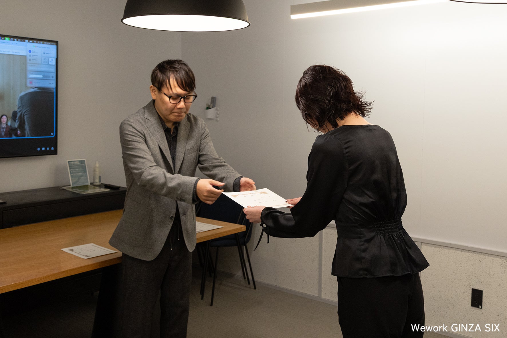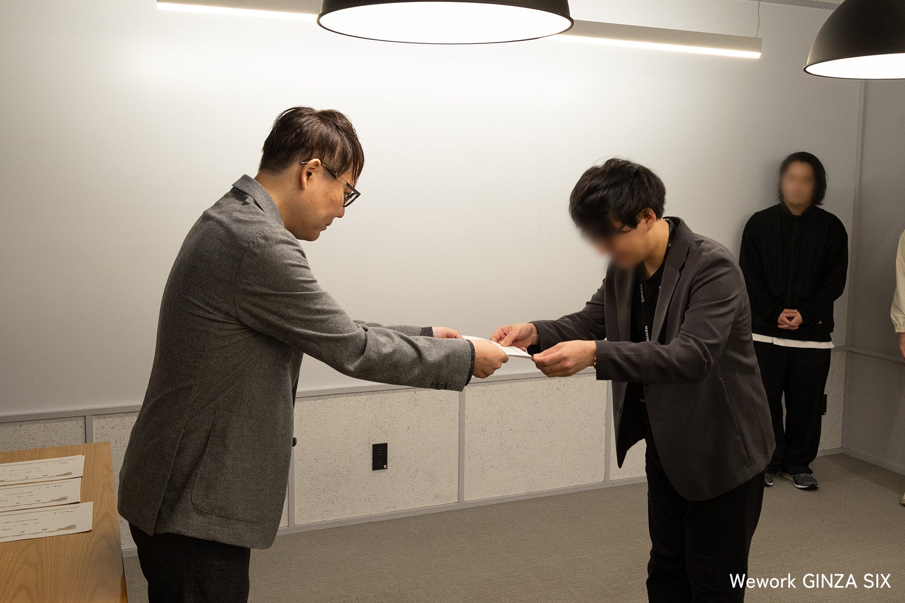 続いて行われた昇格内示式では、15名の社員に対し昇格が内示されました。KURUKURUでは年齢や入社年次に関わらず、実力と成果に基づいた評価・抜擢を行っています。今回の昇格者の中にも、入社から短期間で成果を上げ、新たなポジションを任されるメンバーが含まれています。