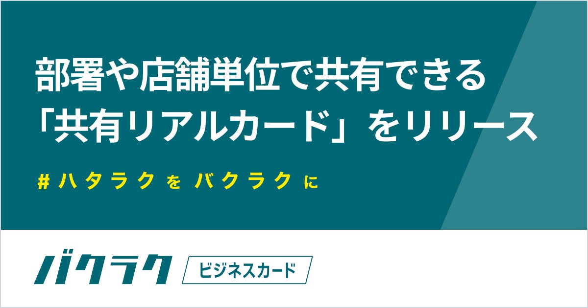 バクラクビジネスカード、部署や店舗で共有できる「共有リアルカード」をリリース。部署や店舗のオフライン支出管理をよりバクラクに