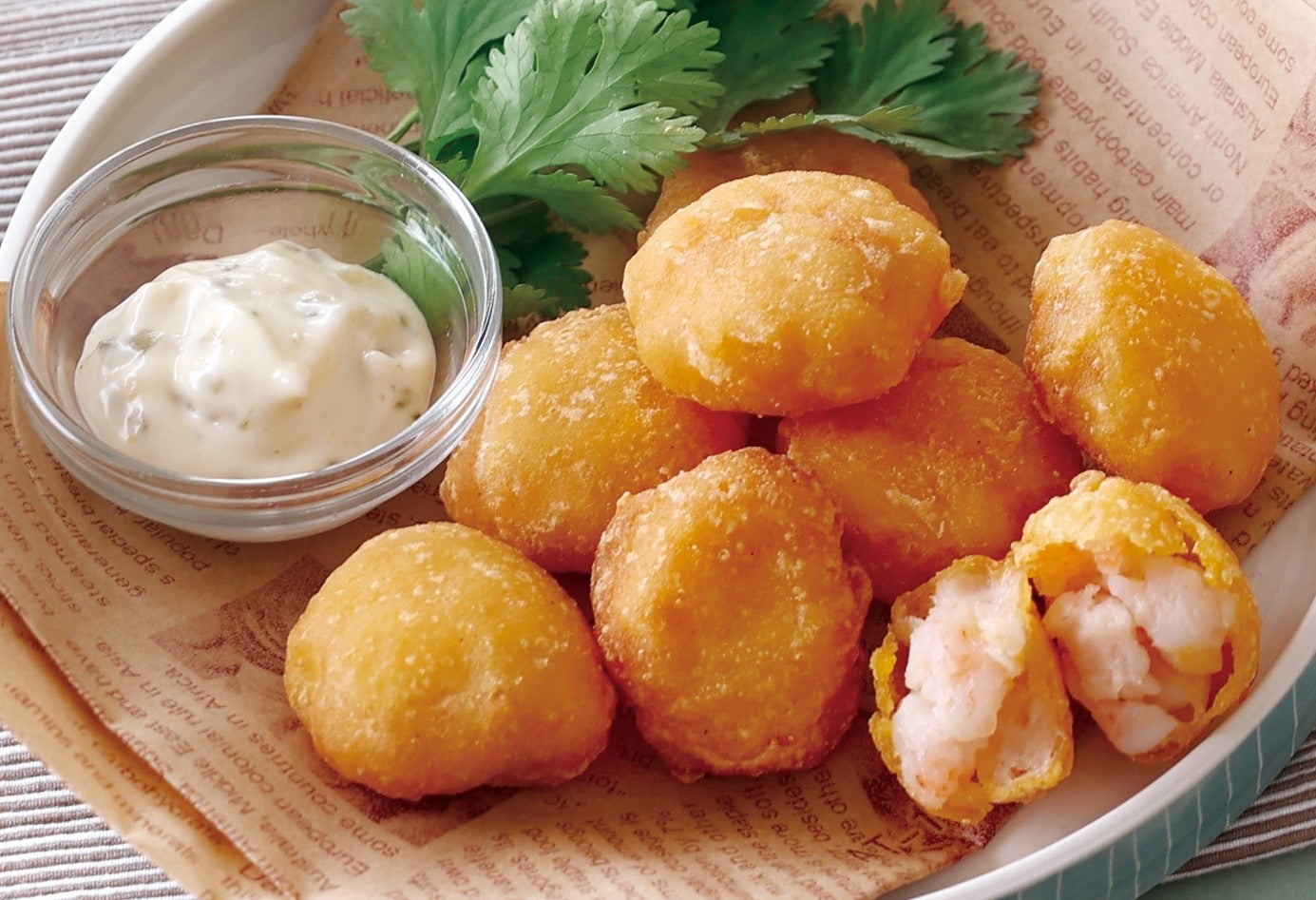 サクッと軽い衣に、たっぷり詰まったプリプリの海老の食感が嬉しいナゲットです。