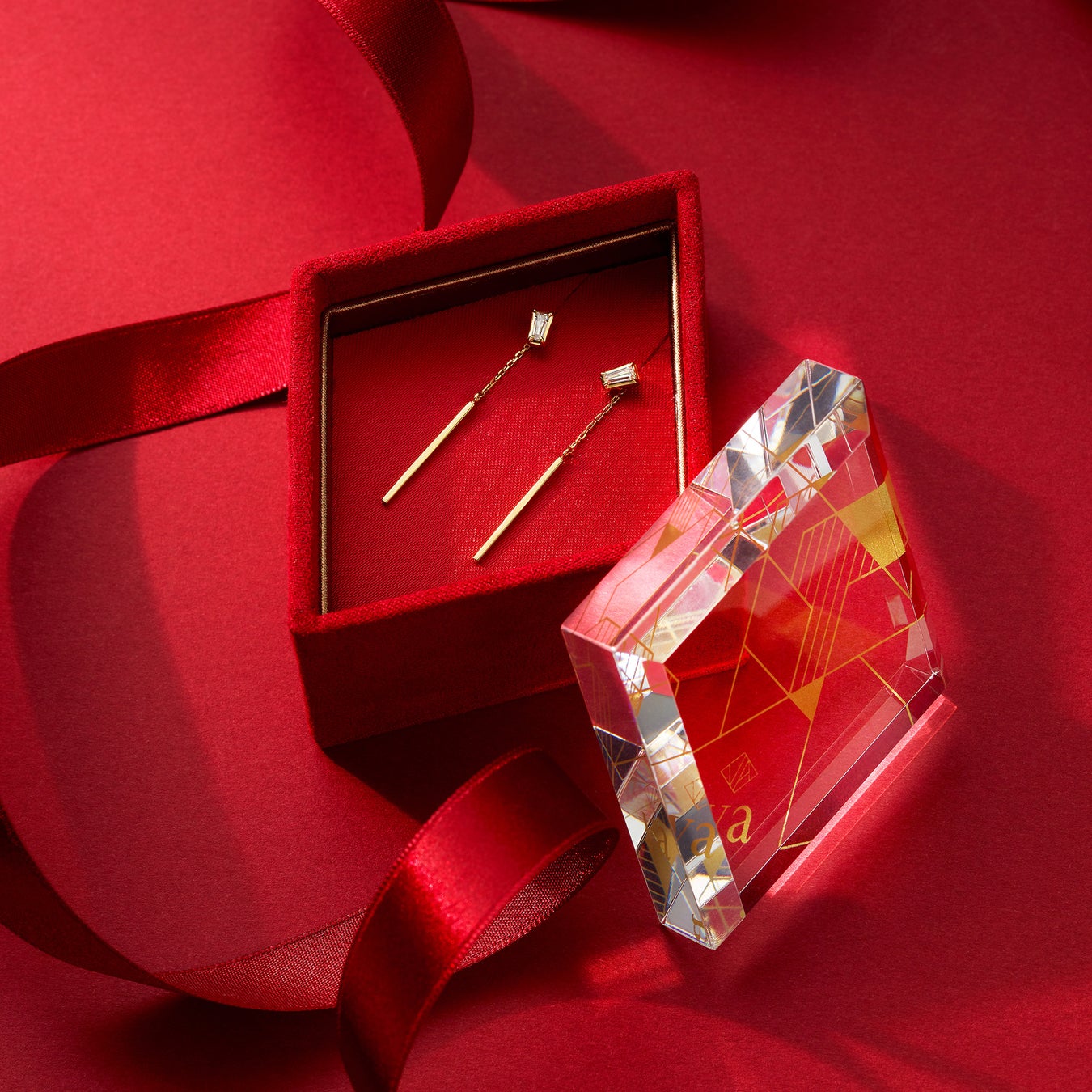 スライド機能付きでスタイリングに合わせて表情を変えることのできるセミロングネックレスやソリッドな直線のバーが揺れるピアスなど、シャープでモダンなムードの限定アイテムの他、1年間頑張った自分へのご褒美に最適なジュエリーが登場します。