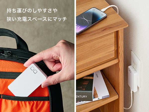 極薄設計なので、ポケットにも簡単に入り、狭いスペースでの充電にも活躍します。
