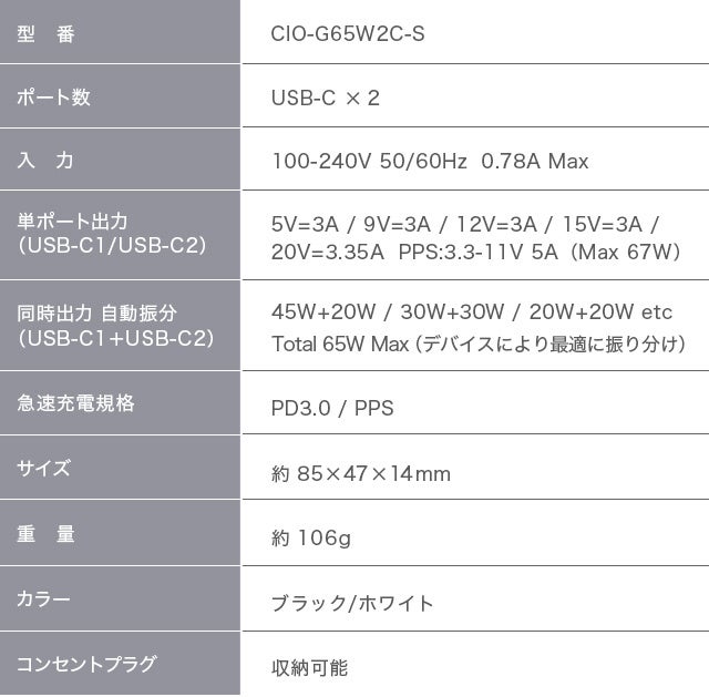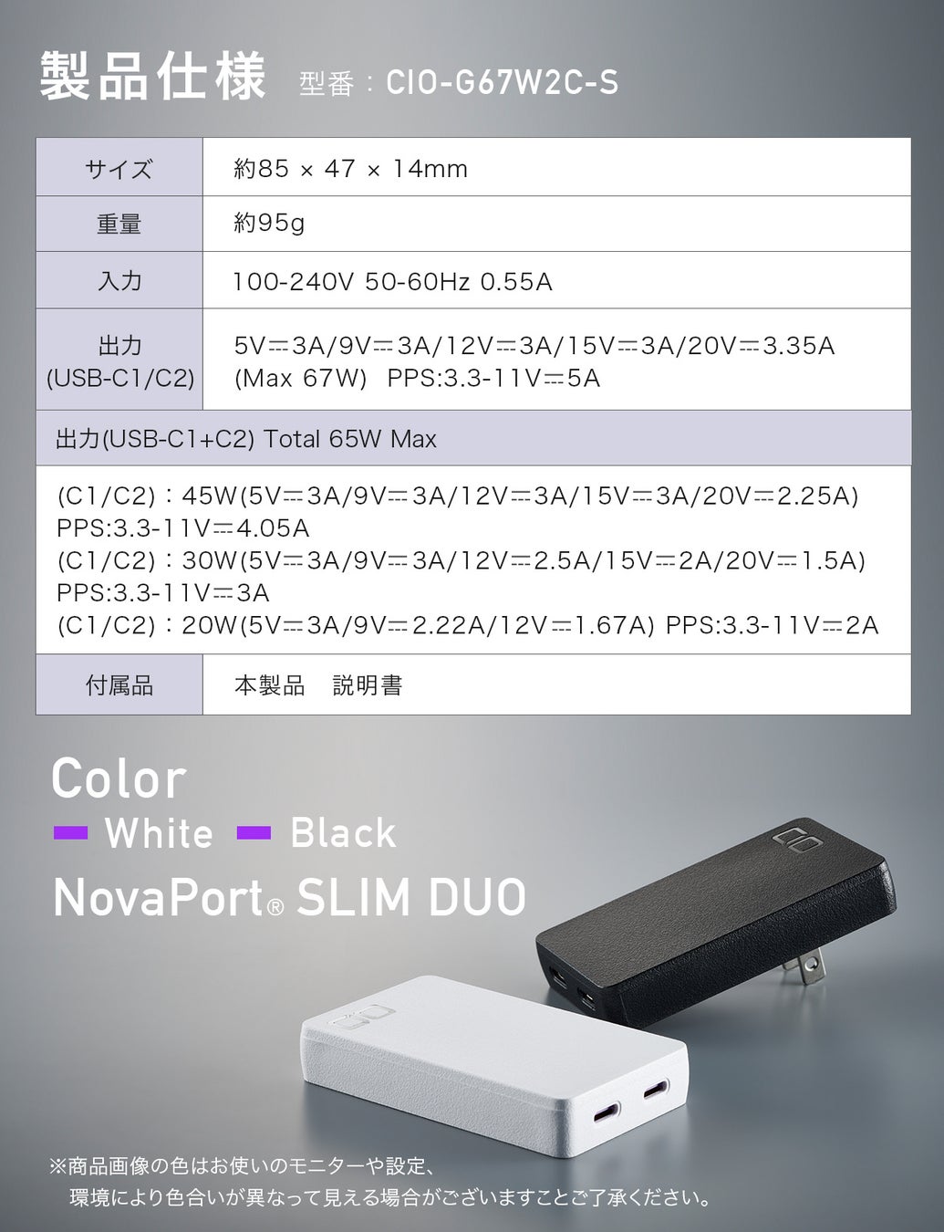商品情報:「NovaPort SLIM 65W」(CIO-G67W2C-S)