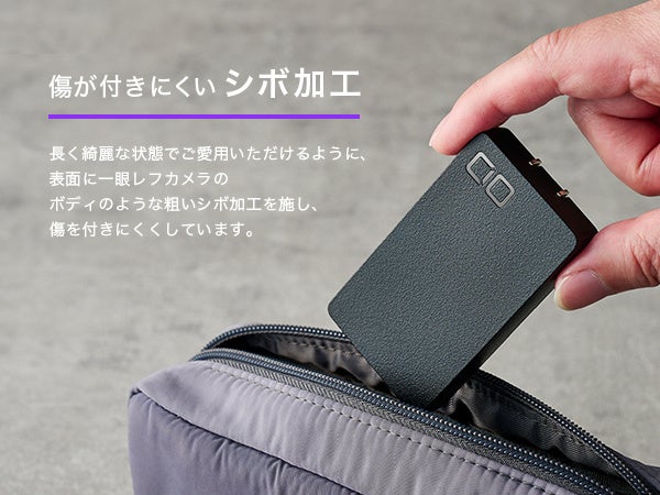 充電器の表面に一眼レフカメラのボディのような粗いシボ加工を施しているため、ペンや爪で引っ搔いても製品表面に傷が付きにくく、より多機能性を高めました。