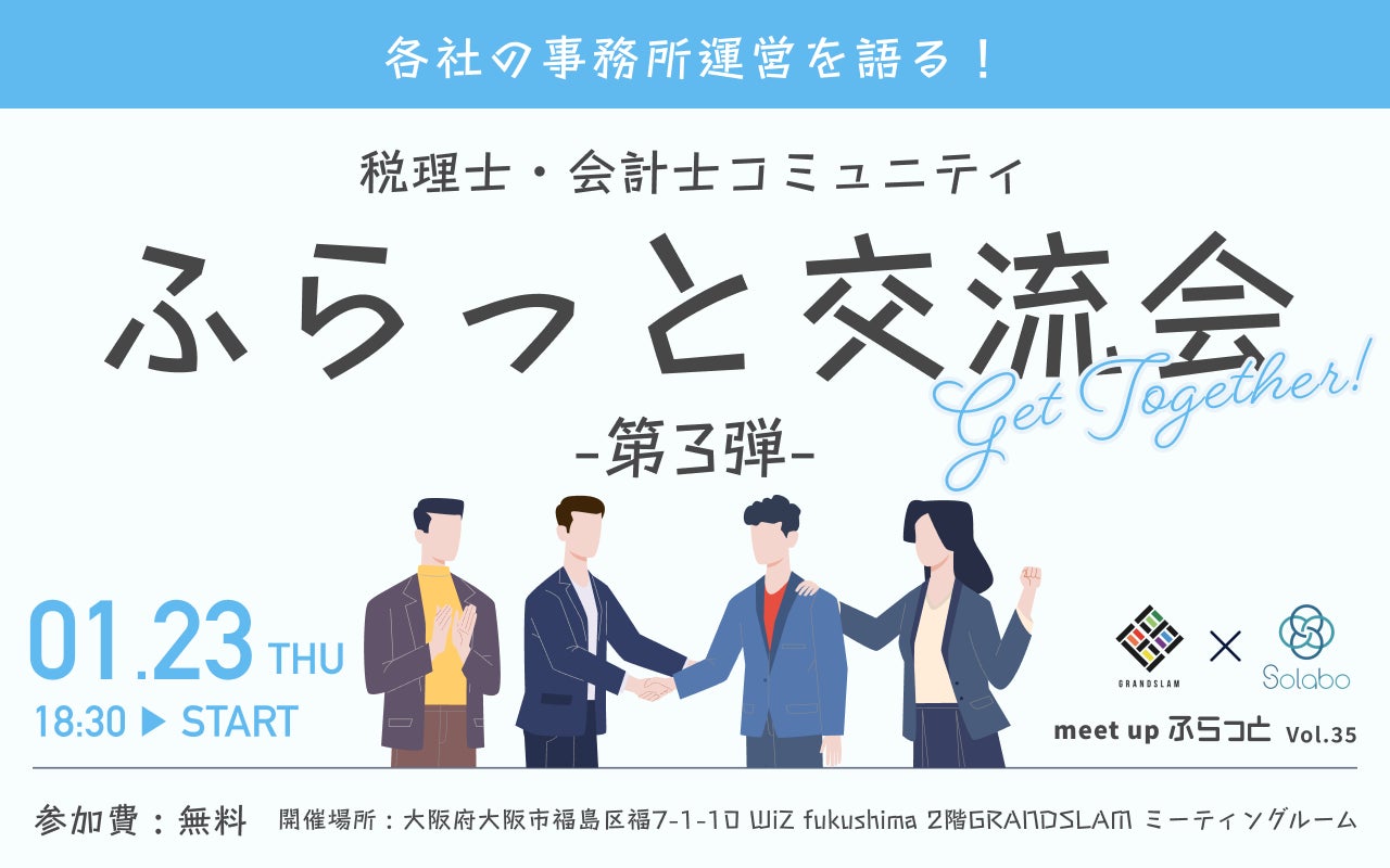 株式会社SoLabo(本社:東京都千代田区、代表取締役 田原 広一)が運営する、税理士・会計士コミュニティふらっとの後援をする税理士・会計士限定の、少人数制イベントを開催いたします。