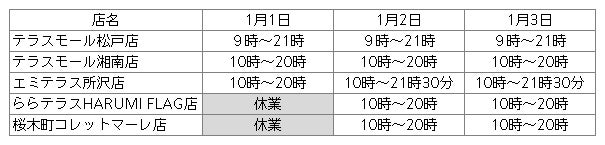 ※ショッピングセンターに出店する以下の店舗は以下のとおり営業いたします。