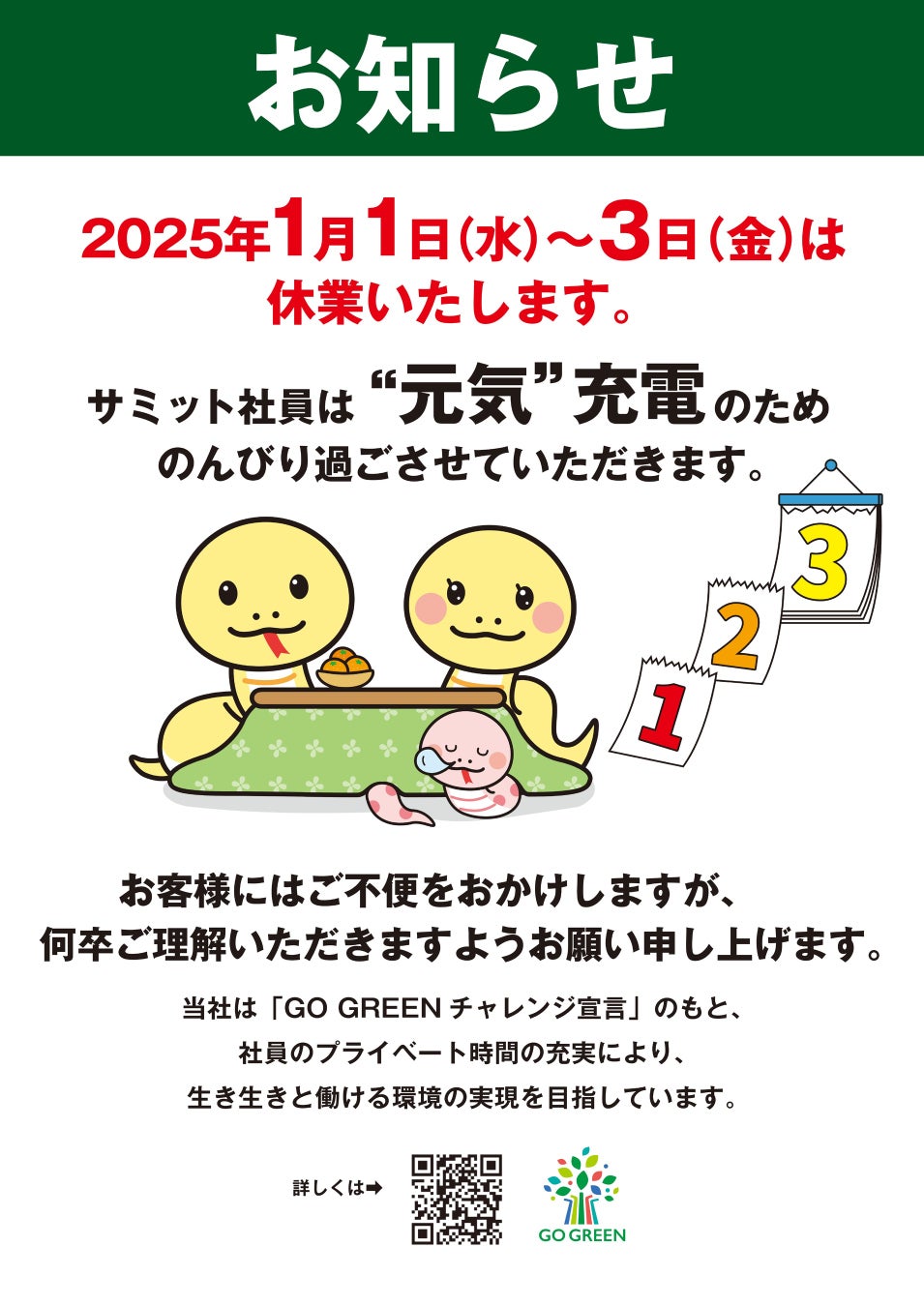 サミットは社員の“元気”充電のため2025年の正月三が日を休業します