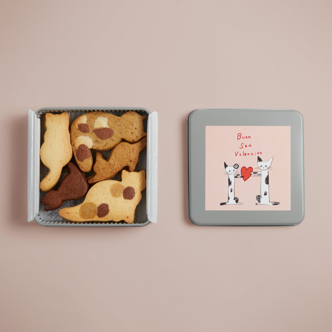 昨年も大人気のバレンタイン仕様の三毛猫クッキーを期間限定で販売いたします。三毛猫がハートをプレゼントしている様子が描かれた可愛らしいデザインのパッケージ。いつもは照れくさくて素直に言葉にできない大切な人への想いを、三毛猫クッキーと一緒に。