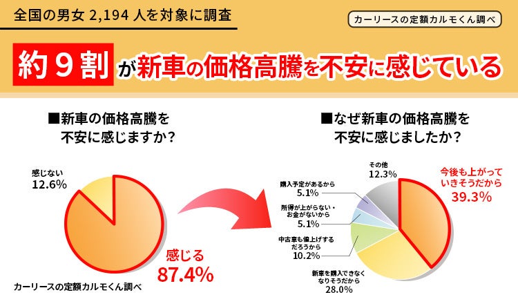 約87%が新車の価格高騰を不安に感じている。理由は「今後も上がっていきそうだから」
