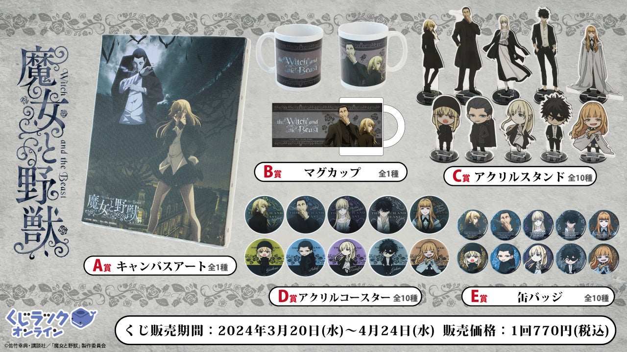 TVアニメ『魔女と野獣』が「くじラックオンライン」に登場!2024年3月20日(水)より発売開始!