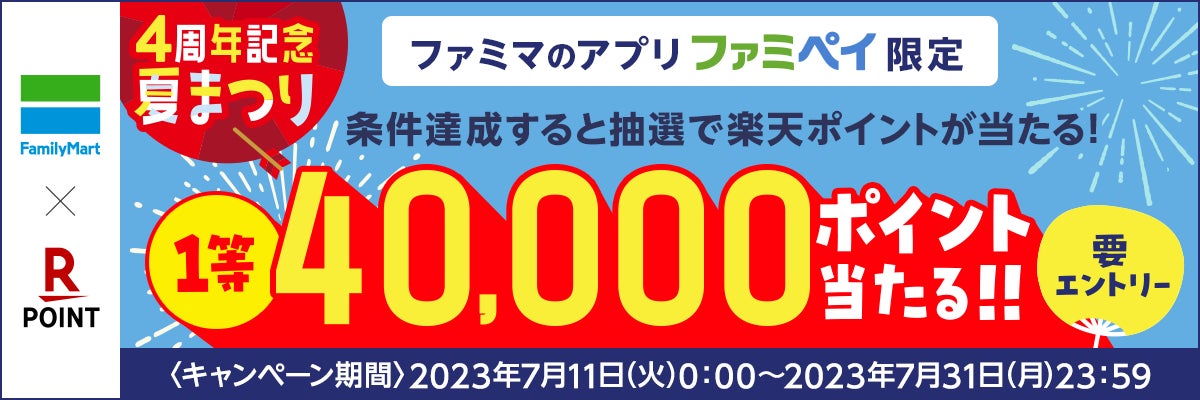 「楽天ポイントカード」、「ファミマのアプリファミペイ4周年!抽選で最大40,000ポイント当たる!」キャンペーンを実施