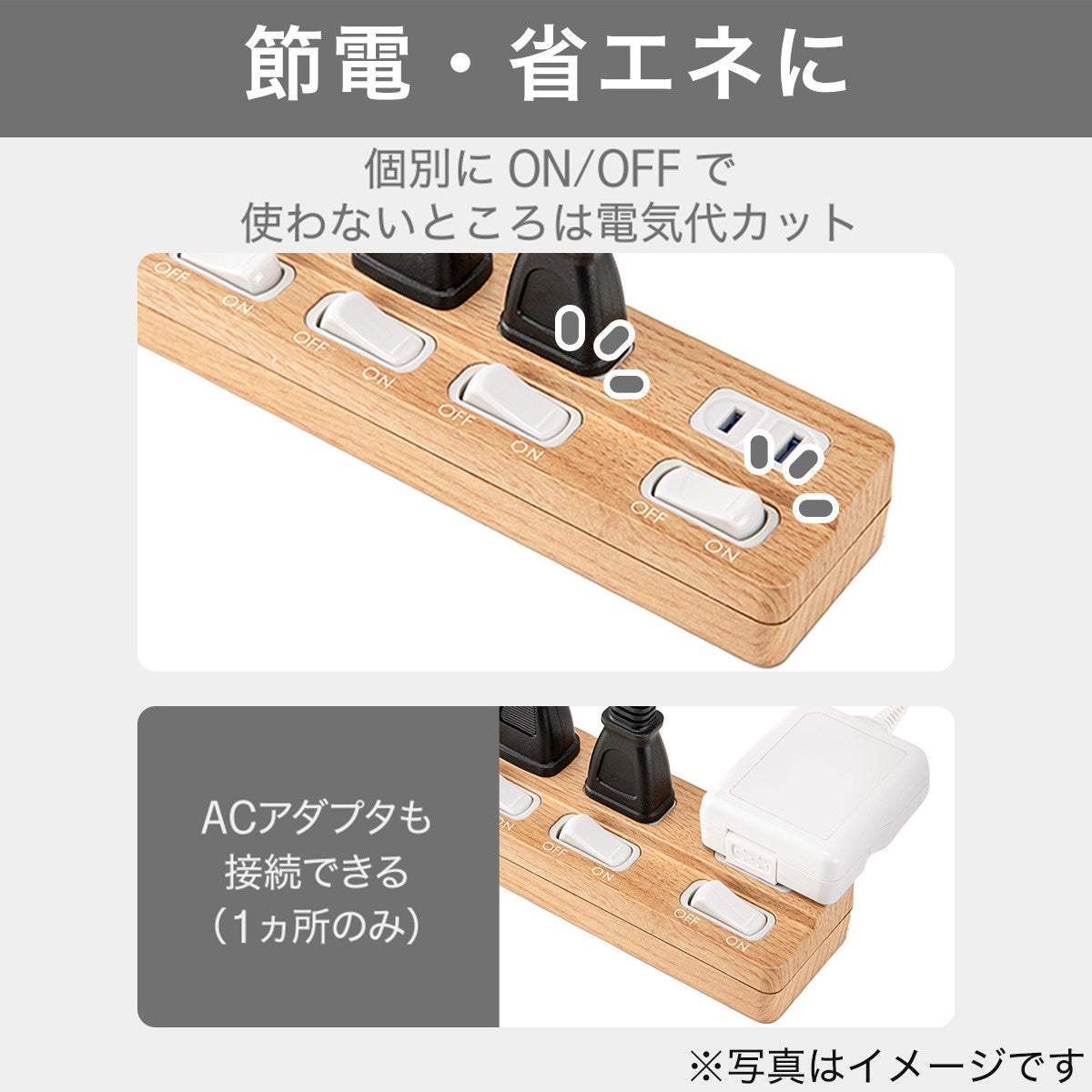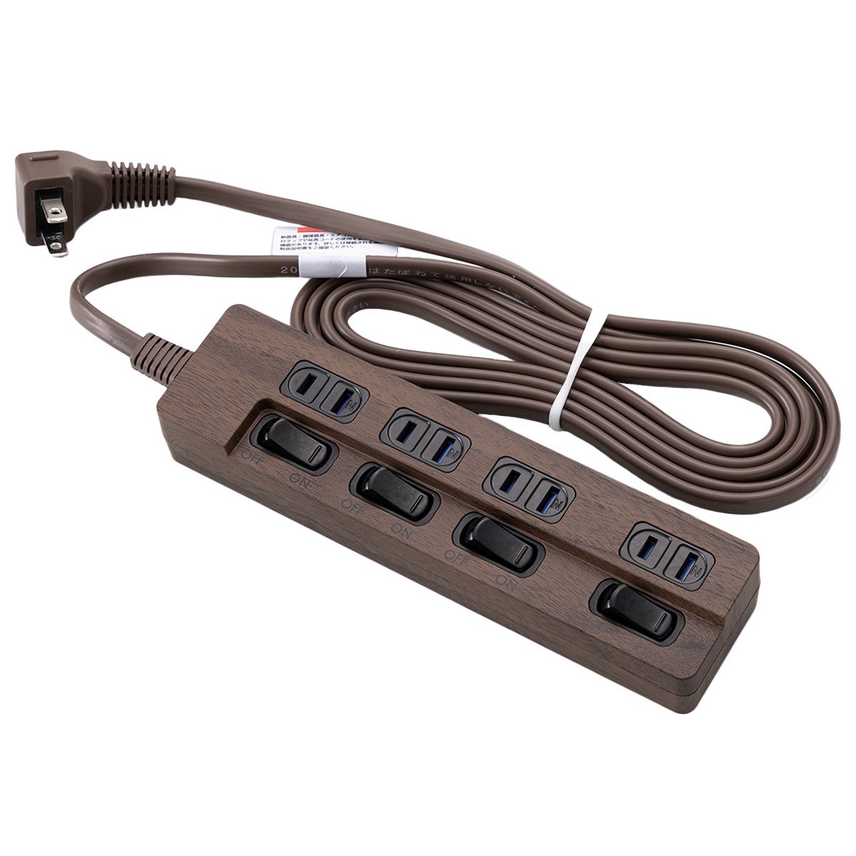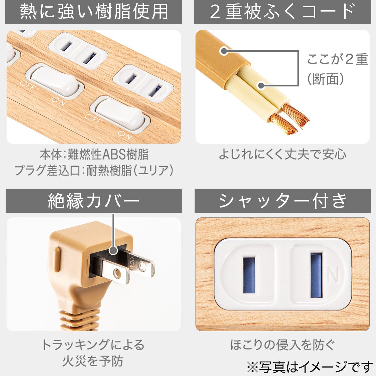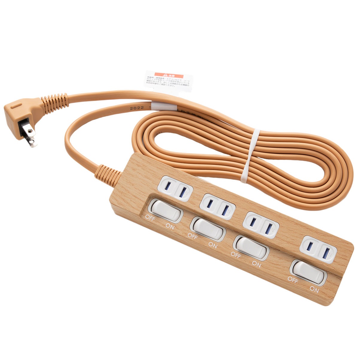 <商品名>4個口節電タップ(木目 2m PJE2-4L )