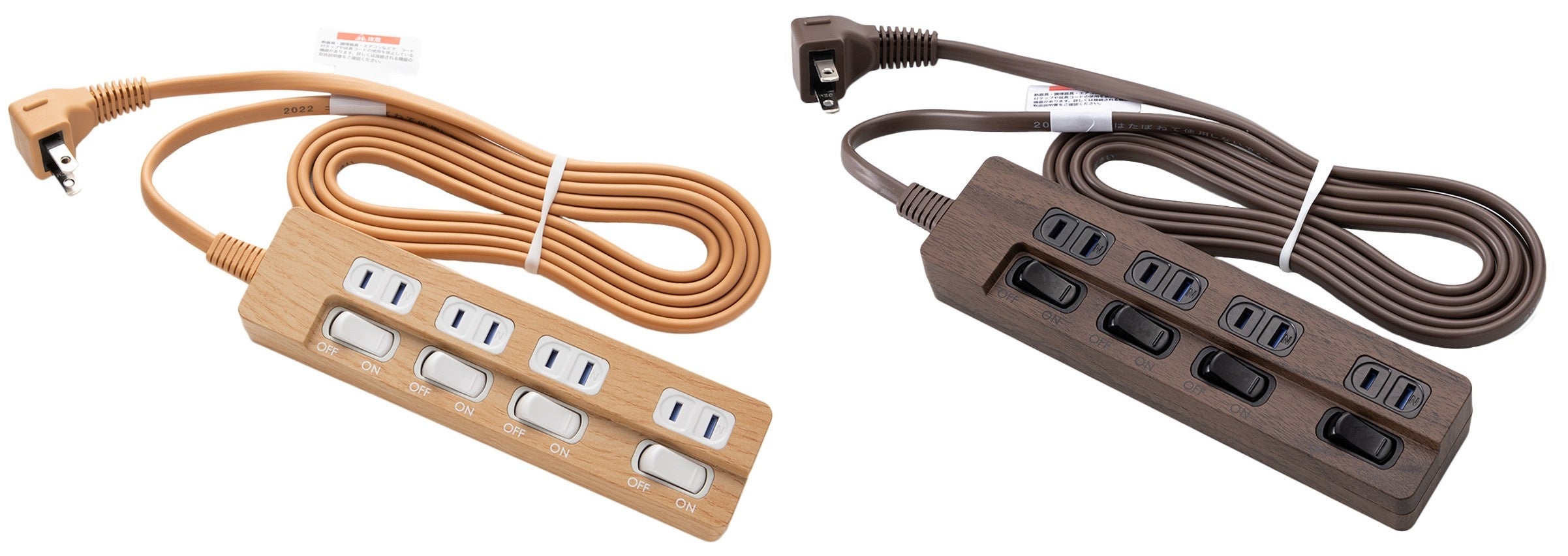 これまでニトリではホワイト・ブラックの2色をご提供していました。その際にいただいた「生活感を出さずにインテリアにも馴染む、節電タップが欲しい」というお客様の声にお応えして、2022年10月末から一部店舗で木目調4個口節電タップを販売。この度ご好評につき、全国のニトリ店舗及びニトリネットへ取り扱いを拡大しました。