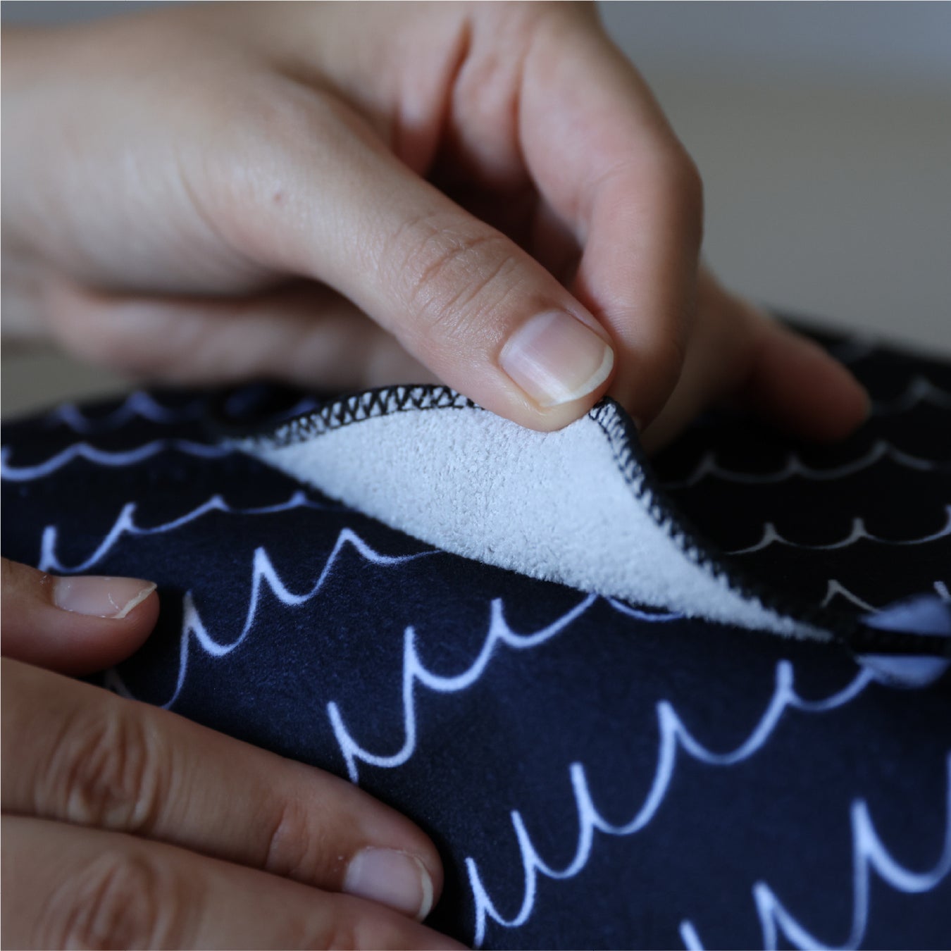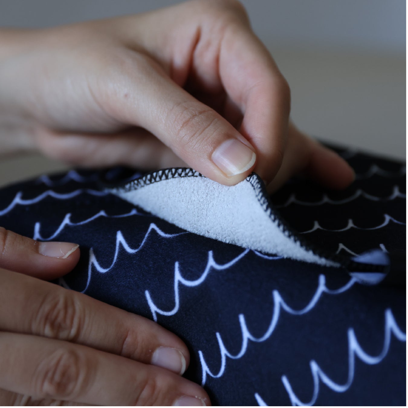 布同士を合わせるだけでくっつくため、結び目やゴムは不要。