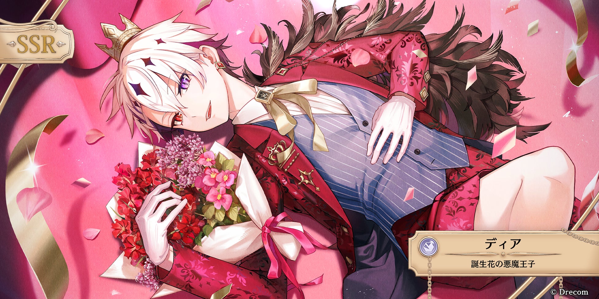 本ガチャでは、バースデー仕様の特別なスーツに身を包んだ「ディア」の『SSR[ディア]誕生花の悪魔王子』が新登場!