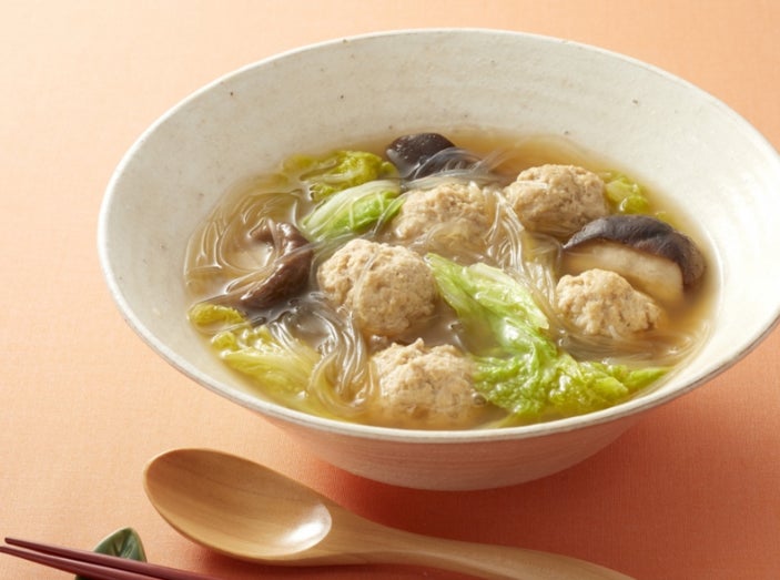下味をつけて冷凍しておいた豚ひき肉を肉団子にして、白菜と煮込んだスープです。