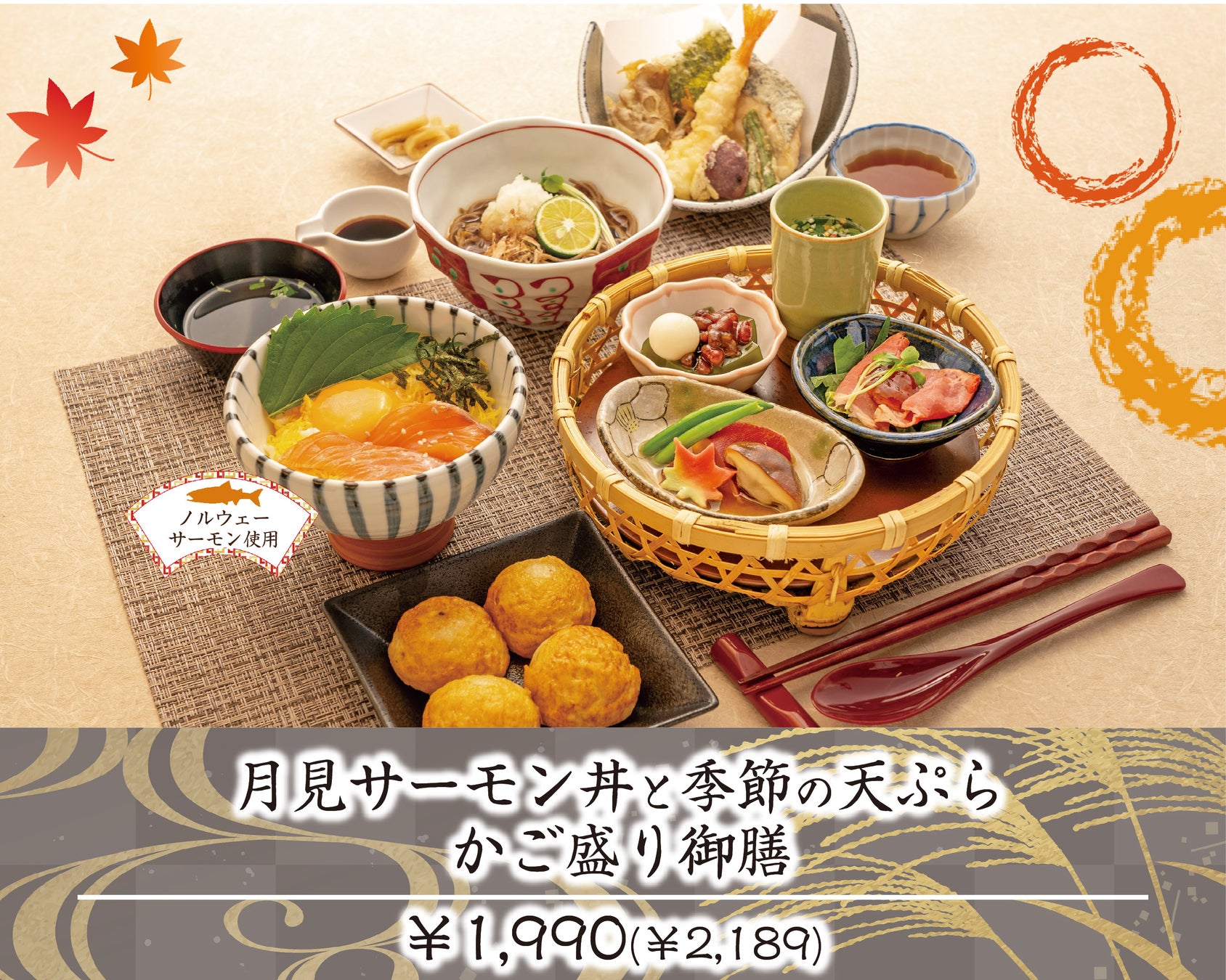 ●月見サーモン丼と季節の天ぷらかご盛り御膳 1,990円(税込み2,189円)