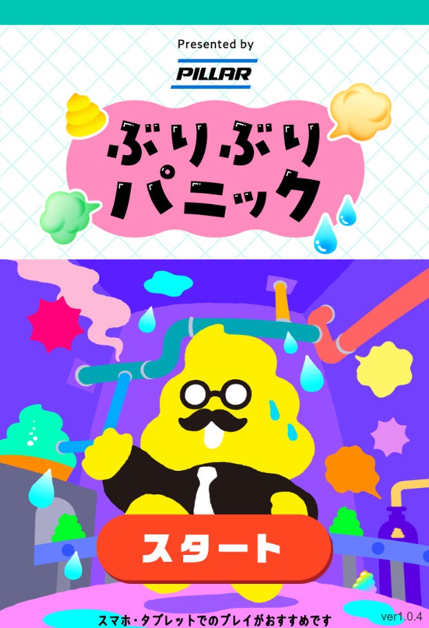 さらに多くの子どもたちにPILLARのことをもっと知って欲しいという想いから開発したアプリ「ぶりぶりパニック」は、レアうんこ工場を舞台にどんどんもれてくる水とガスをタップして食い止めるゲームです。PILLARの従業員がどのような仕事に取り組んでいるかを、ゲームをプレイすることを通じて直感的にイメージできるようになっています。