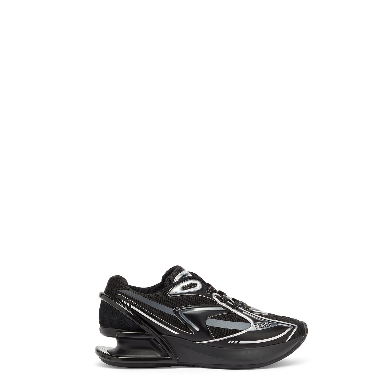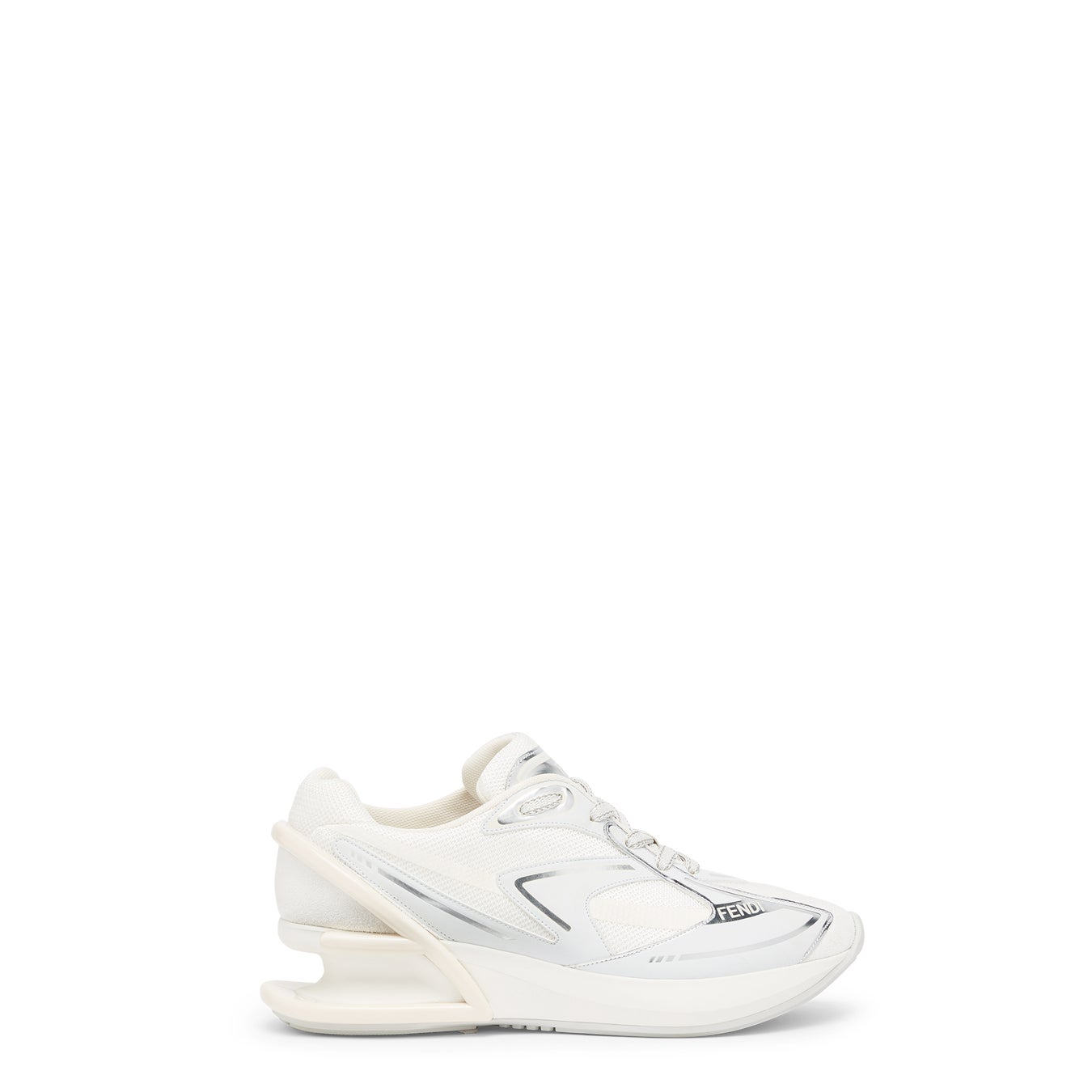 サスペンションソールは、素早い動きを思わせるスウィフトラインと流線型のルック、そして「フェンディ ファースト 1」スニーカーを象徴する軽さとともに、後部が浮いているかのような錯覚をもたらすヒールのすき間によって特徴づけられています。立体的なソールを引き立てるアッパーは軽く、また細編みのファブリックと、エンボス加工が直接施されたテクニカルディテールによってモダンな雰囲気が目を惹きます。
