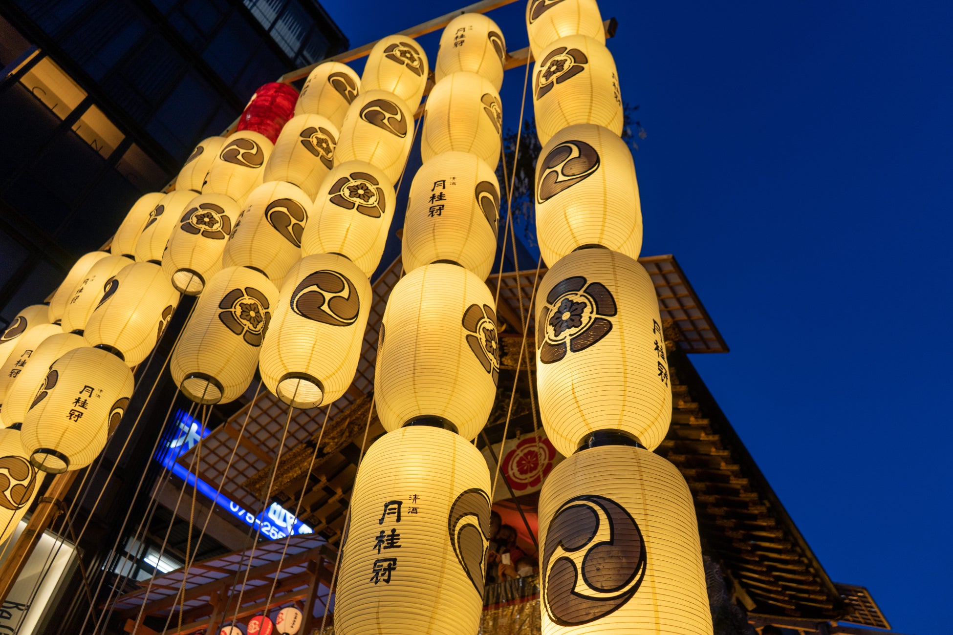 祇園祭の中でも宵山の期間は、山鉾に灯された提灯が幻想的な光景を演出し、四条通周辺は歩行者天国となり、屋台や露店が立ち並ぶ華やかな雰囲気に包まれます。