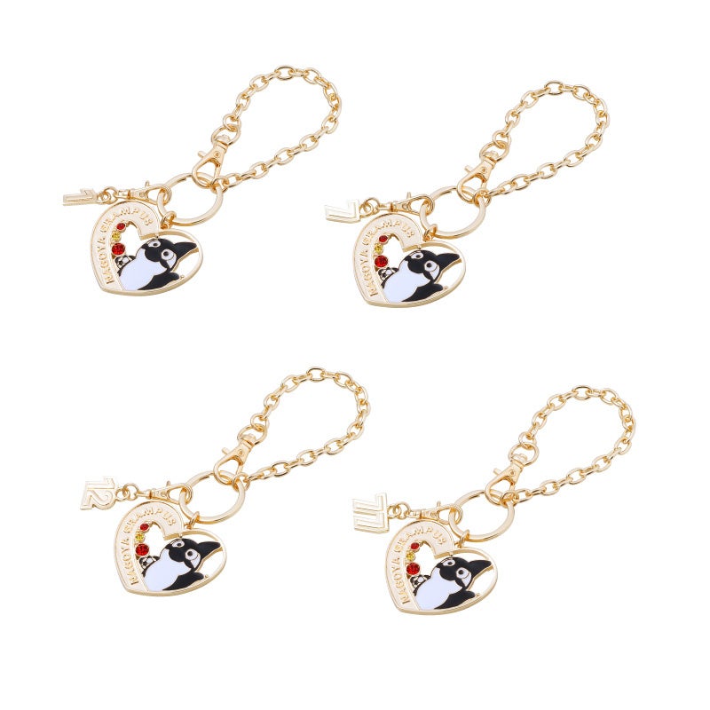 ハート型のバッグチャームにはグランパスくんとチームカラーストーンを華やかにセット。