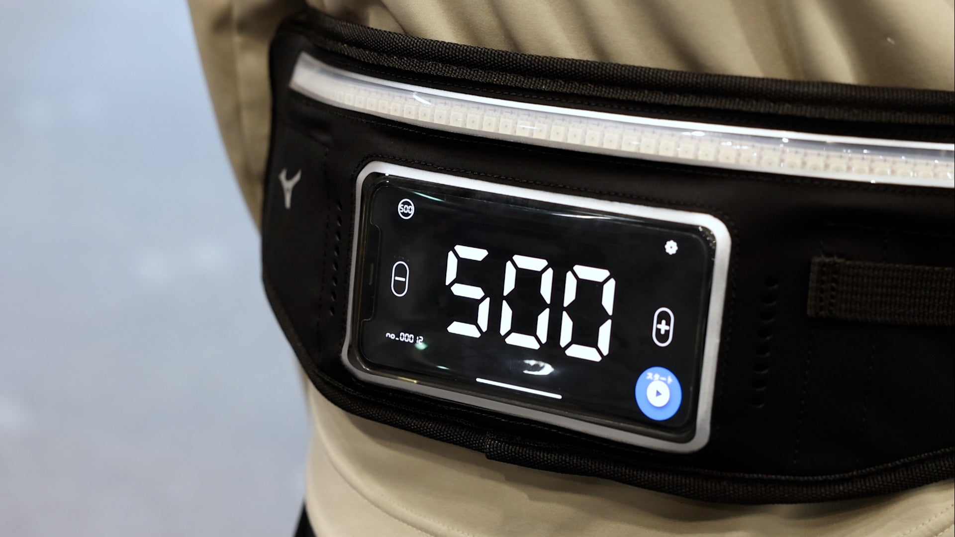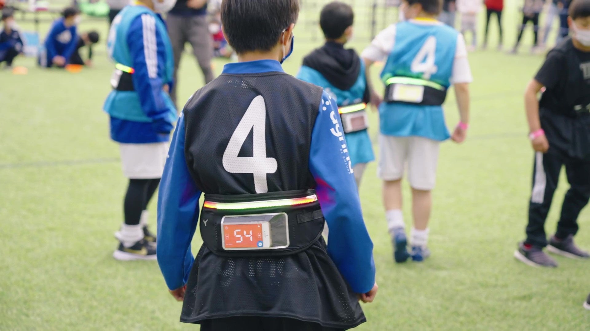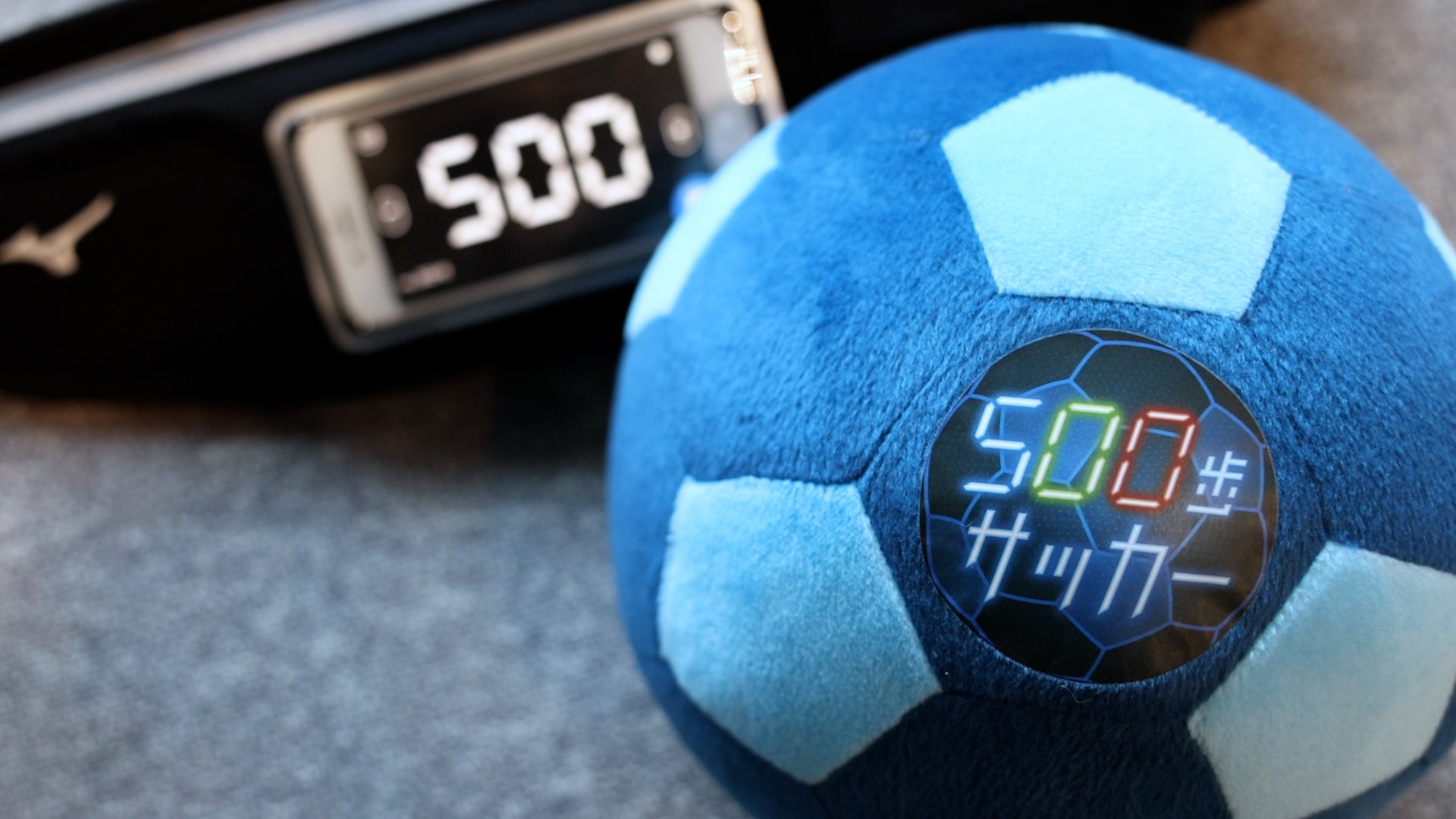 「500歩サッカー」は、ミズノが開発した専用アプリが搭載されたスマートフォンと、アプリが連動して光るLEDポーチを腰の背中側につけプレーする新感覚のスポーツです。スマートフォンで歩数がカウントされ、1人500歩の持ち歩数が0歩になったら即退場となります。走るなど早い動きをすると、振動がスマートフォンに伝わり、その分歩数が早く減ってしまうため、体力や技術以上にチームでの戦略がカギとなります。残り歩数は自分からは見えない位置に表示され、チーム内で歩数を教えることが必要になるため、自然とコミュニケーションも生まれます。さらに、持ち歩数とLEDの発光色・演出が連動する仕掛けにより、参加者だけでなく観客も楽しめるようになっています。