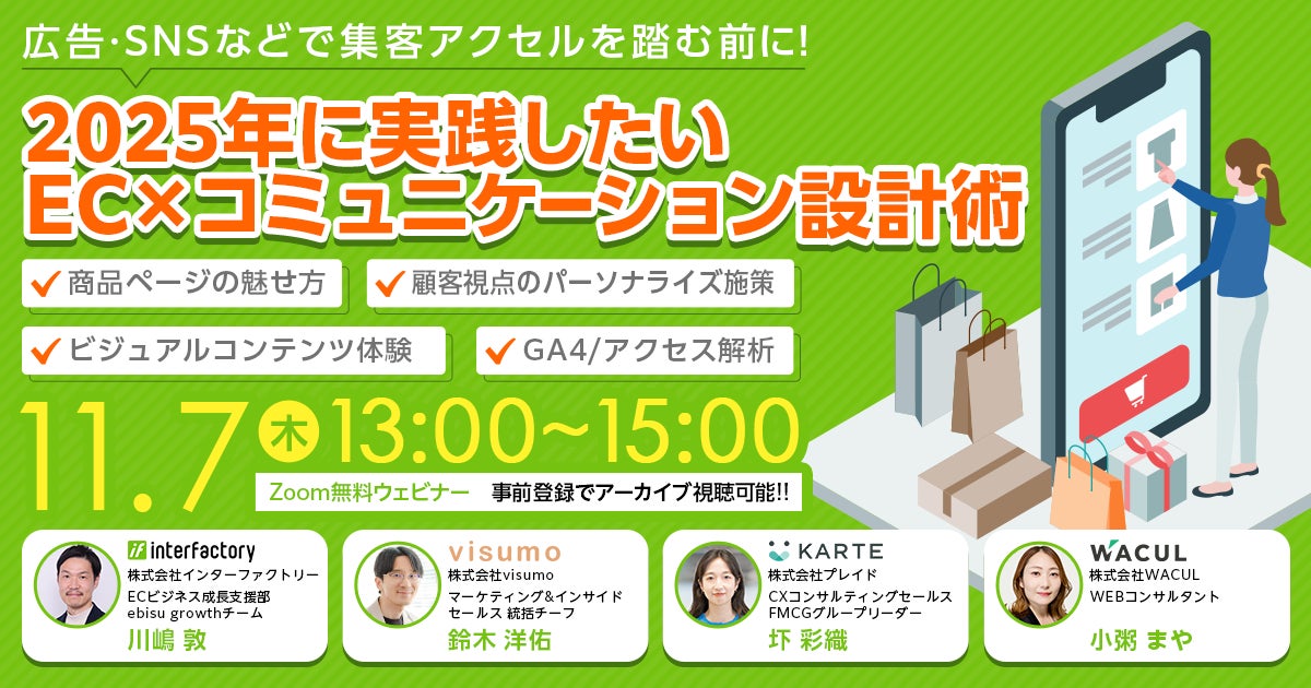 2025年に実践したいEC×コミュニケーション設計術 ~商品ページの魅せ方・ビジュアルコンテンツ体験・顧客視点のパーソナライズ施策・GA4/アクセス解析~にWACULが登壇
