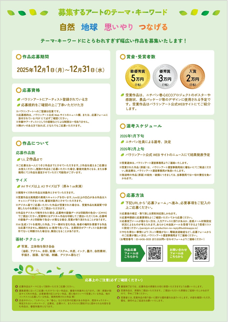 結果発表:2026年2月上旬 パラリンアート公式WEBサイトのニュースにて結果発表