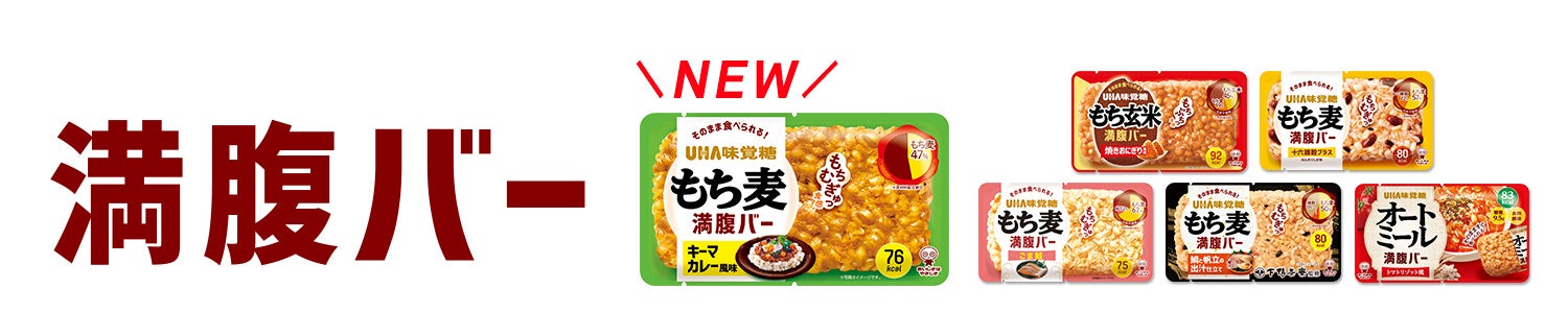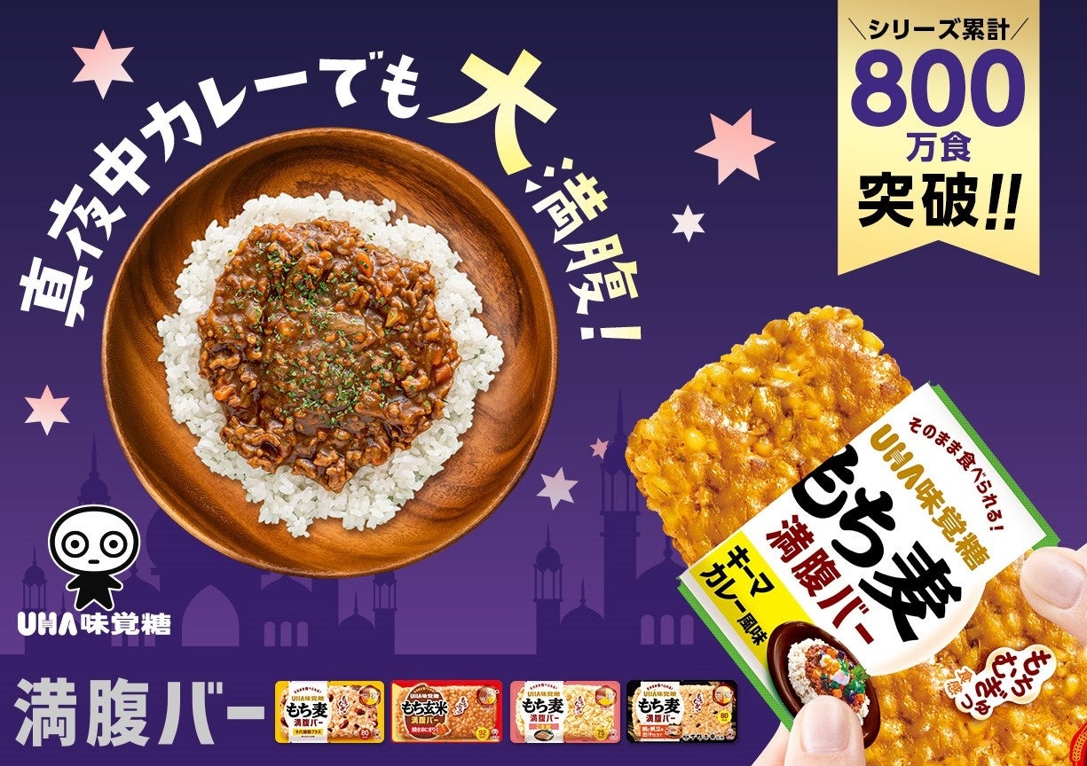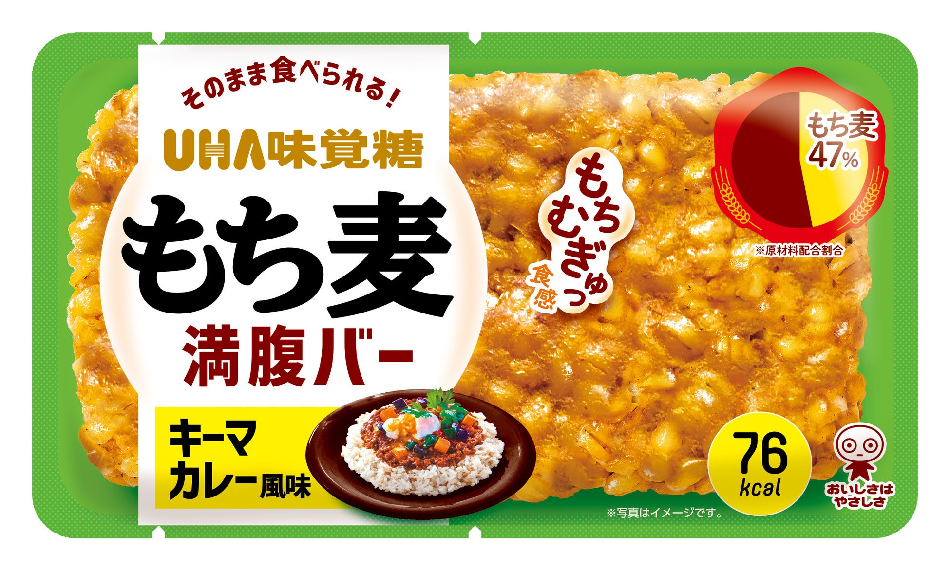800万食突破!常温長持ちコンパクト!新時代のおにぎり「満腹バーシリーズ」から新味登場!UHA味覚糖「もち麦満腹バー キーマカレー風味」2024年10月17日(木)より新発売
