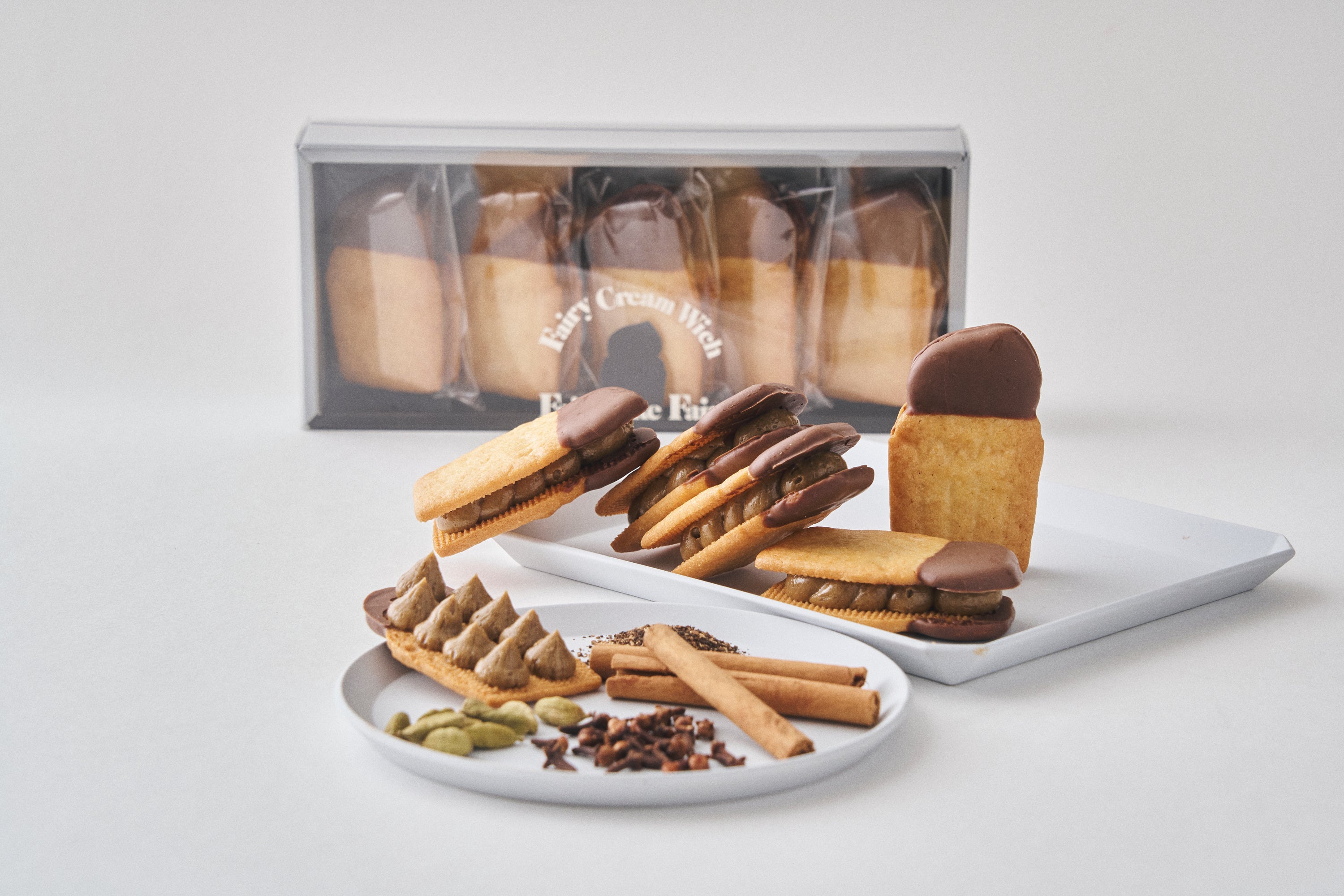 カップケーキとビスケットの店「フェアリーケーキフェア」は、人気の生バターサンドシリーズ『フェアリークリームウィッチ』から、秋の新作「チャイティーラテ生バターサンド」を発売します。