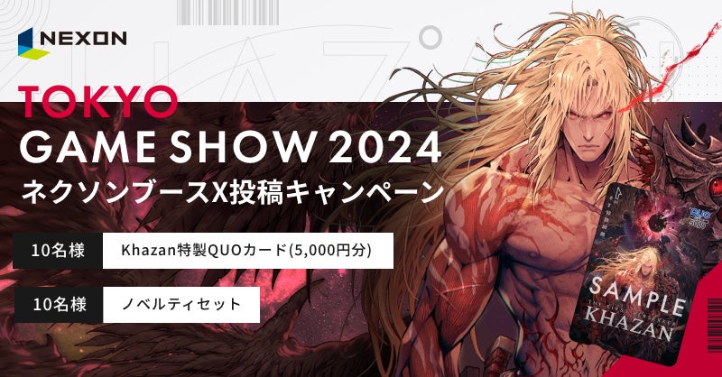 9月26日(木)の東京ゲームショウ 2024開幕に合わせて、ネクソンブースのノベルティセットや、『Khazan』オリジナルQUOカードが当たるキャンペーンを開催いたします。