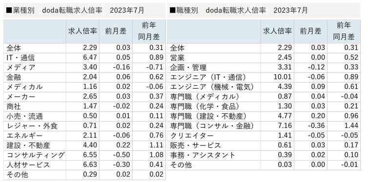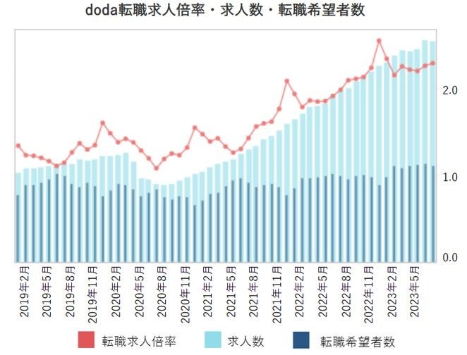 doda転職求人倍率 2023年7月は2.29倍(前月差+0.03ポイント)
