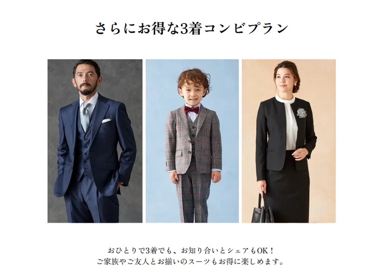 ※ コンビプラン・・・オーダースーツを2着以上ご購入していただいた場合の1着あたりのお値段です。組み合わせは自由ですので、異なる価格帯のオーダースーツと組み合わせていただいても本価格が適用されます。