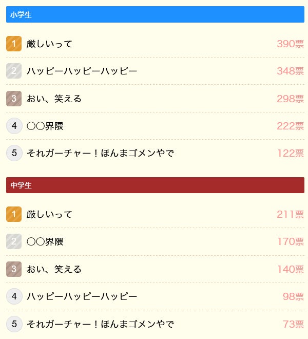 【調査結果】2024年に小中学生がよく使った言葉1位は「厳しいって」。よく耳にした音楽1位は「はいよろこんで」(こっちのけんと)