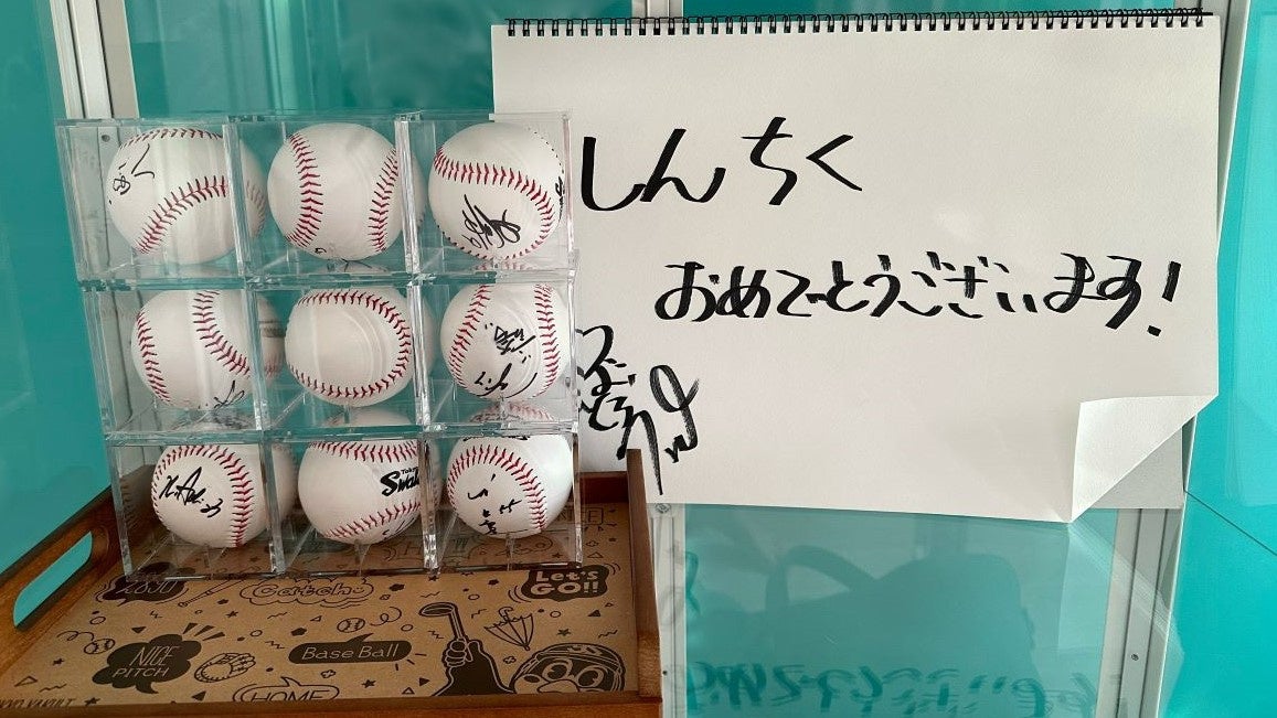 つば九郎がオープンレジデンシア 「日本で一番スワローズな家」を訪問 ご入居祝いとメッセージのプレゼントの贈呈を行いました