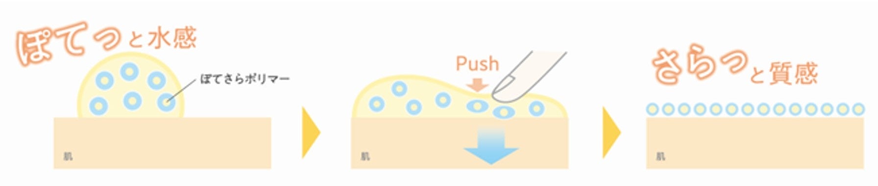 「ぽてさら」の秘密は水分を抱えた「ぽてさらポリマー」、一年中潤う肌に。