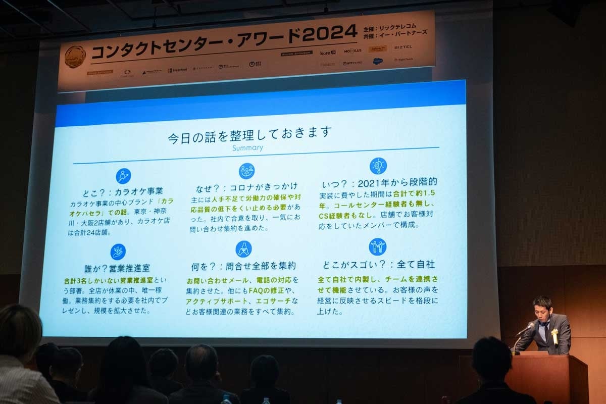 この度の受賞では、オリコン顧客満足度調査 カラオケボックス部門で1位を獲得しているカラオケ パセラを運営するNSグループによる、CIS(顧客感動満足)向上を実現したコンタクトセンター立ち上げの取り組みが評価されました。今後も当社はFAQシステムの運用支援を通じて、顧客課題と向き合い、エンドユーザーの顧客体験向上に貢献してまいります。