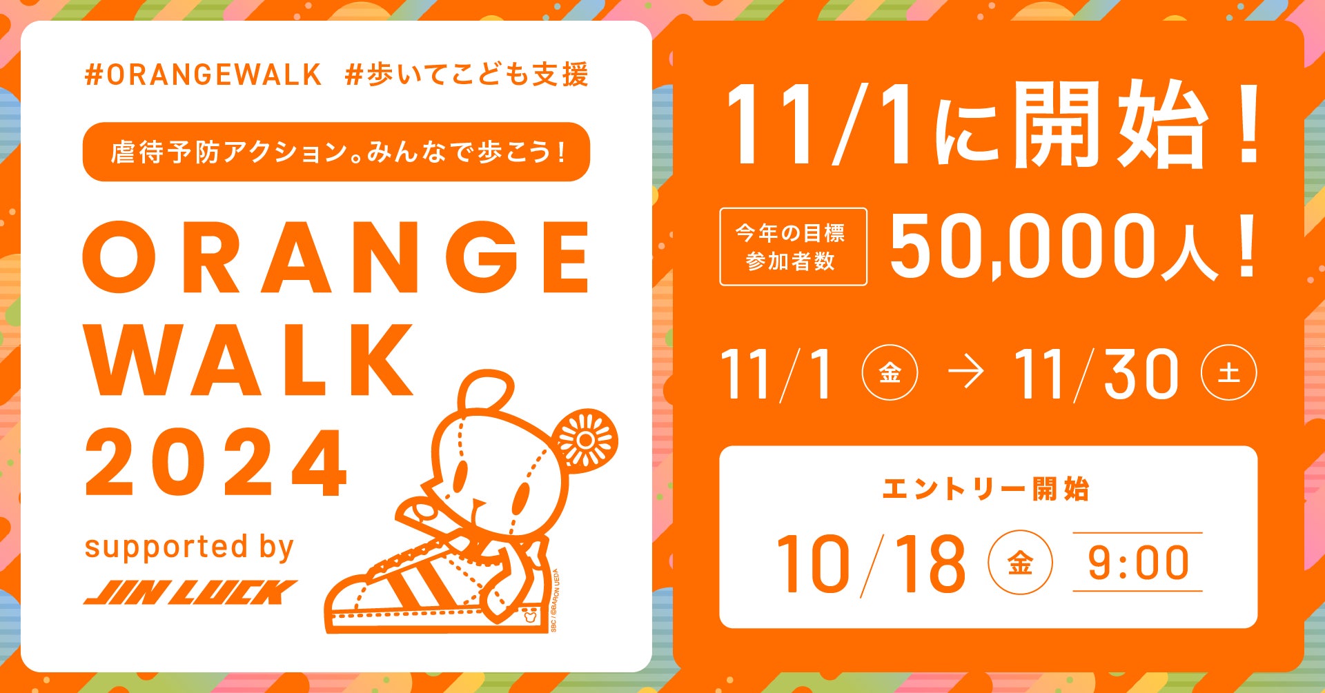 本イベントは児童虐待防止推進月間の啓発活動として、期間中の参加者数と参加者が歩いた歩数に応じて助成を行う「#歩いてこども支援」のチャリティウォークイベントです。昨年は13の児童虐待防止に取り組む非営利団体と連携し、35,423人が参加しました。3年目の今年は16の団体が横断的に参画する大きな規模に成長。総参加者数50,000人を目指します。