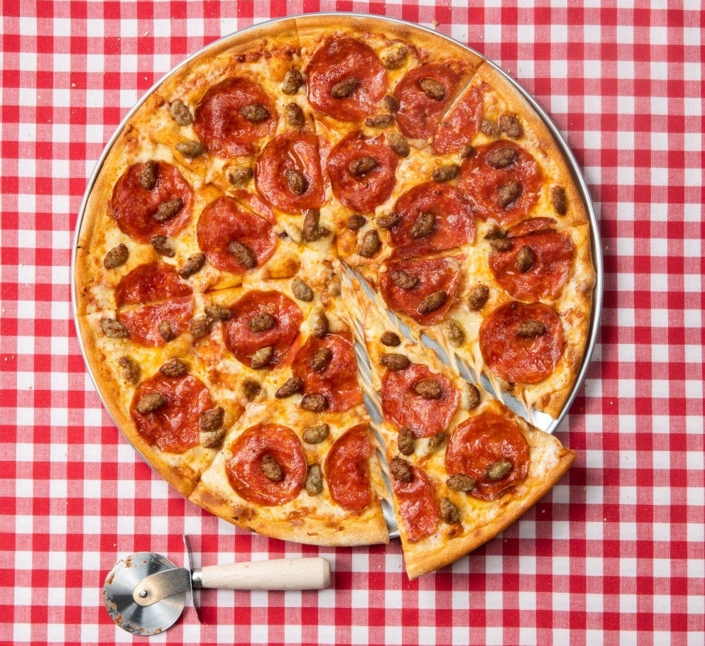 通常の 2.5 倍のサイズのペパロニをトッピング。長時間熟成しジューシー感がアップしています。本場ニューヨークスタイルのビックサイズなピザ。