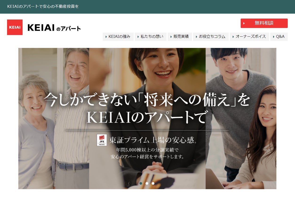 ケイアイスター不動産株式会社は、2021年4月から開始したアパート事業の事業拡大に伴い、この度インフレ対策や老後の資産形成として少ない初期投資でアパート経営ができる「KEIAIのアパート」の専用サイトを公開しました。