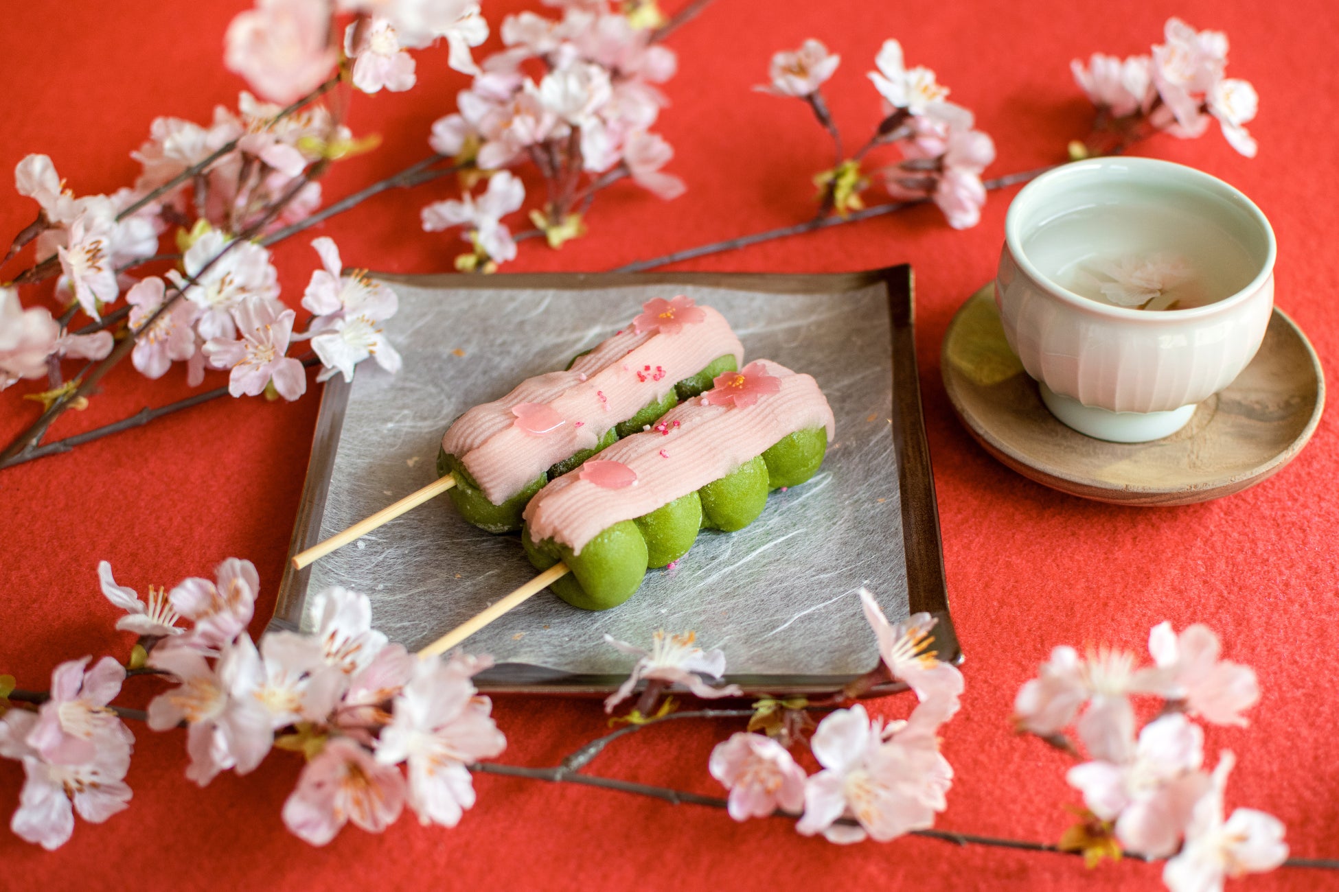 夜桜鑑賞中に、抹茶と桜を掛け合わせた花見団子と温かい桜茶を提供します。花見団子は、夜桜人力車体験のためだけに、地元の和菓子店「風流堂」とオリジナルのものを共同開発しました。いつでもどこでも気軽に楽しめるという松江の茶の湯文化に倣い、スタッフお勧めの桜鑑賞スポットで一息ついたときに食べることができます。ライトアップされた夜桜の真下に腰かけて花見団子を味わう特別な時間です。