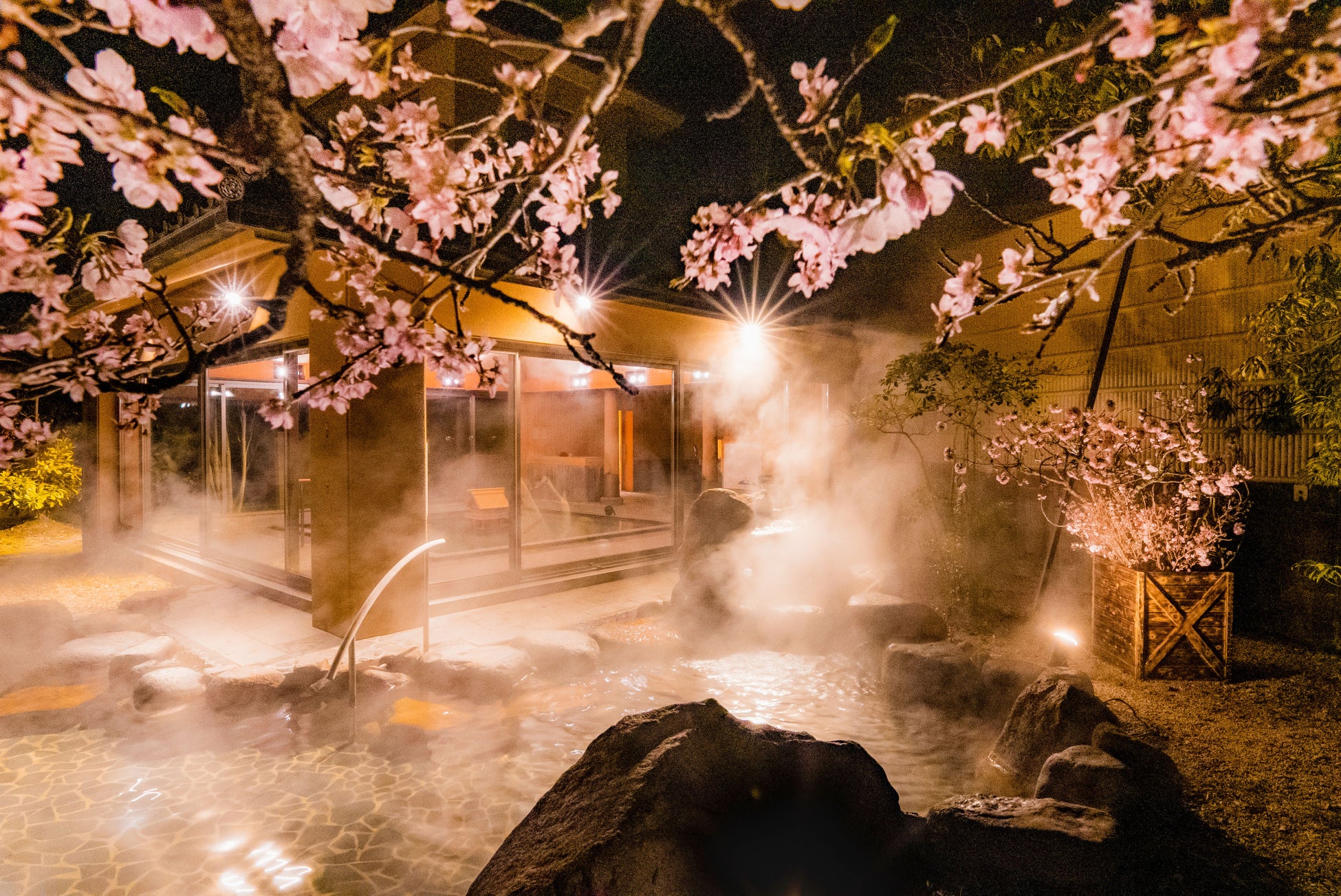 22:00 大浴場露天風呂で花見風呂を楽しむ