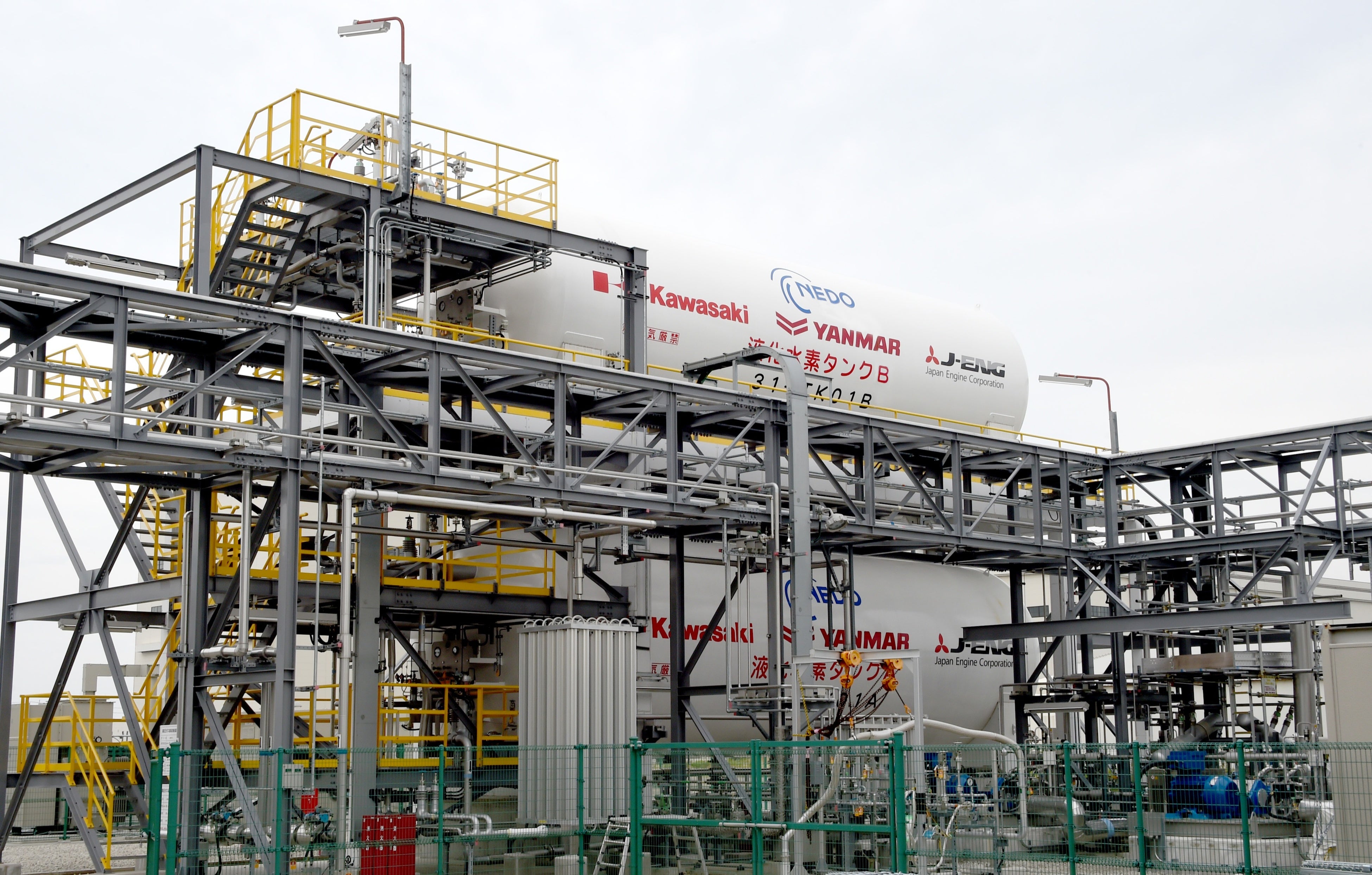 このたび、本事業による世界初の取り組みとして、実証用の液化水素燃料供給設備(以下、本設備)をジャパンエンジン本社工場内へ新たに設置し、舶用水素エンジンの陸上運転に成功しました。