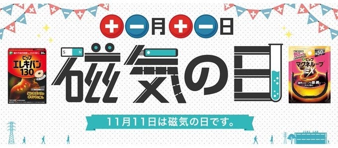 ピップエレキバン・ピップマグネループを製造販売し、磁気治療器業界をけん引するピップが、磁気について、より正しい理解を深めてもらうことを目的に、1992年(平成4年)5月に制定しました。11月11日は、磁石のN極(+)とS極(-)「+-」を、漢数字「十一」に見立てた事に由来します。