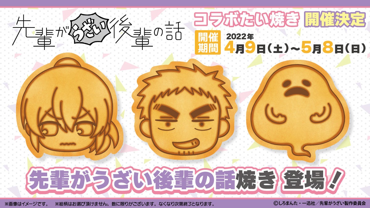 2022年4月9日(土)より「先輩がうざい後輩の話」とコラボレーションした『先輩がうざい後輩の話焼き』・『先輩がうざい後輩の話 ノベルティ付きドリンク』を販売いたします。- セガのたい焼き「先輩がうざい後輩の話焼き」の販売