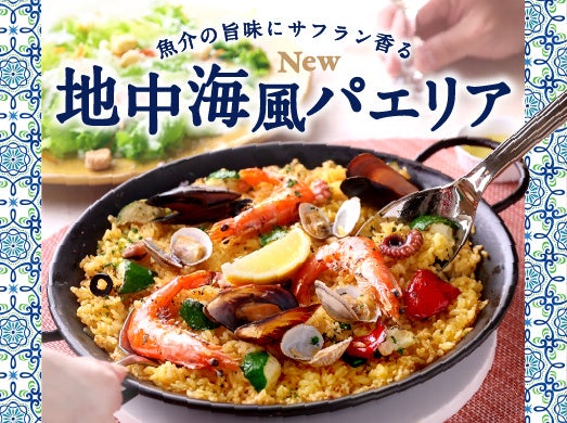 『地中海風パエリア』は、厳選素材をふんだんに使用した魚介と野菜のパエリアです。使用しているスープは、アサリと魚介の旨みがたっぷり、サフランで香り付けした本格派。