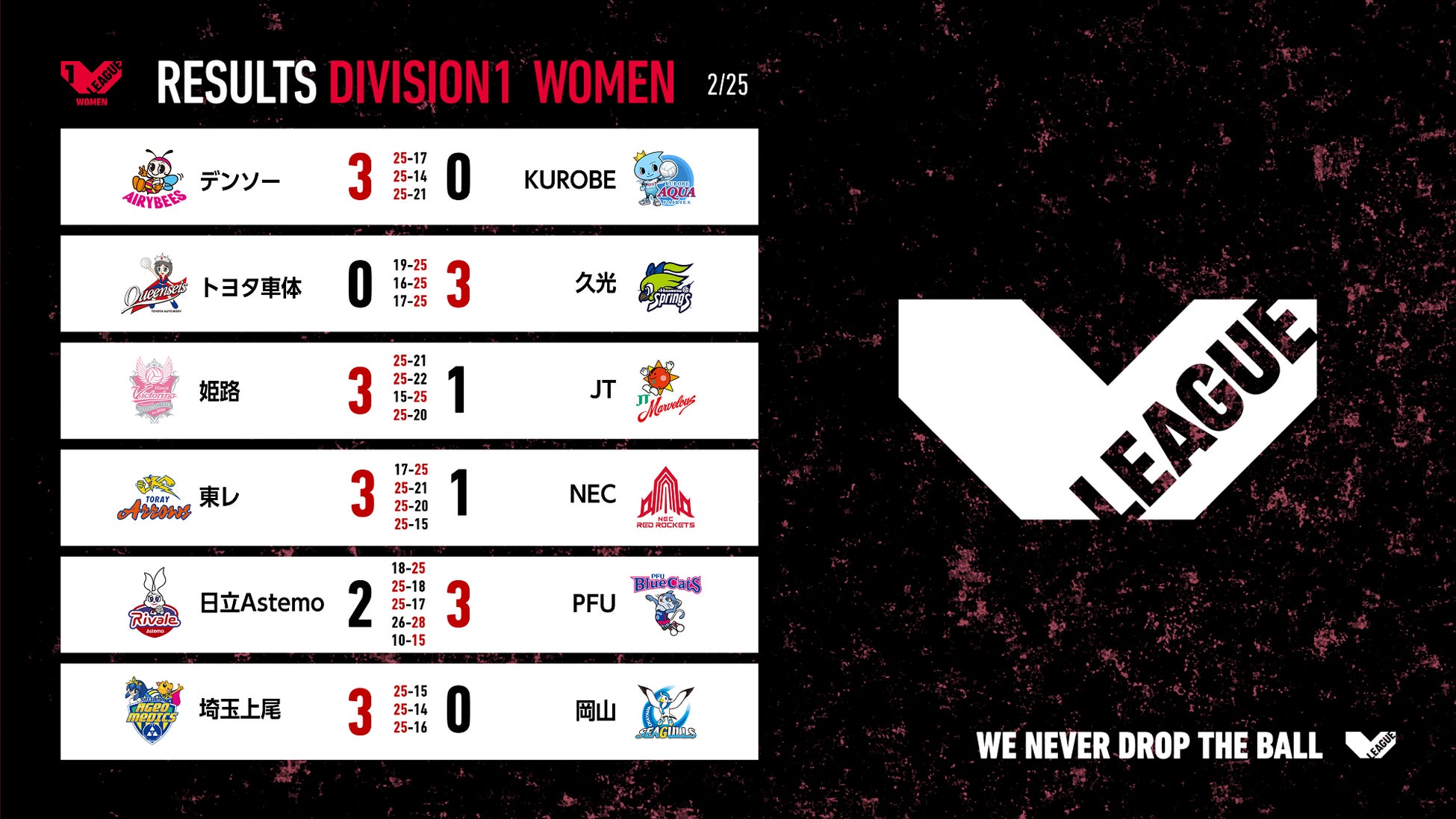 【バレー/Vリーグ】V1男子・サントリーがジェイテクトに快勝!V1女子・最下位姫路が首位JTに勝利!
