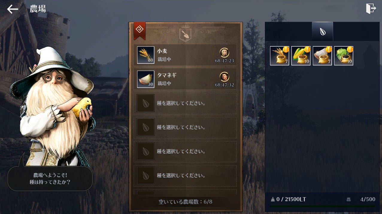 農場には品種改良された種を植えることができ、各村の種子商人から購入することができます。