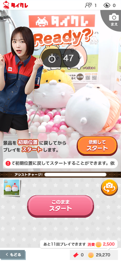 「タイトーオンラインクレーン(タイクレ)」は、登録者数370万人を突破した、いつでもどこからでもPCやスマートフォン、タブレットから本物のクレーンゲームを遠隔でプレイすることができるサービスです。景品はぬいぐるみやフィギュアなどアミューズメント施設を超える圧倒的な品揃えが特徴で、更にはタイクレ限定プライズも毎月多数登場。一定回数以上プレイいただいても景品を獲得できない時はスタッフが景品を移動し獲得をお手伝いする「アシストサービス」を実装しており、お客様よりご好評をいただいております。Webブラウザ版をはじめ、App Store版、Google play版、Yahoo!ゲーム版にてお楽しみいただけます。