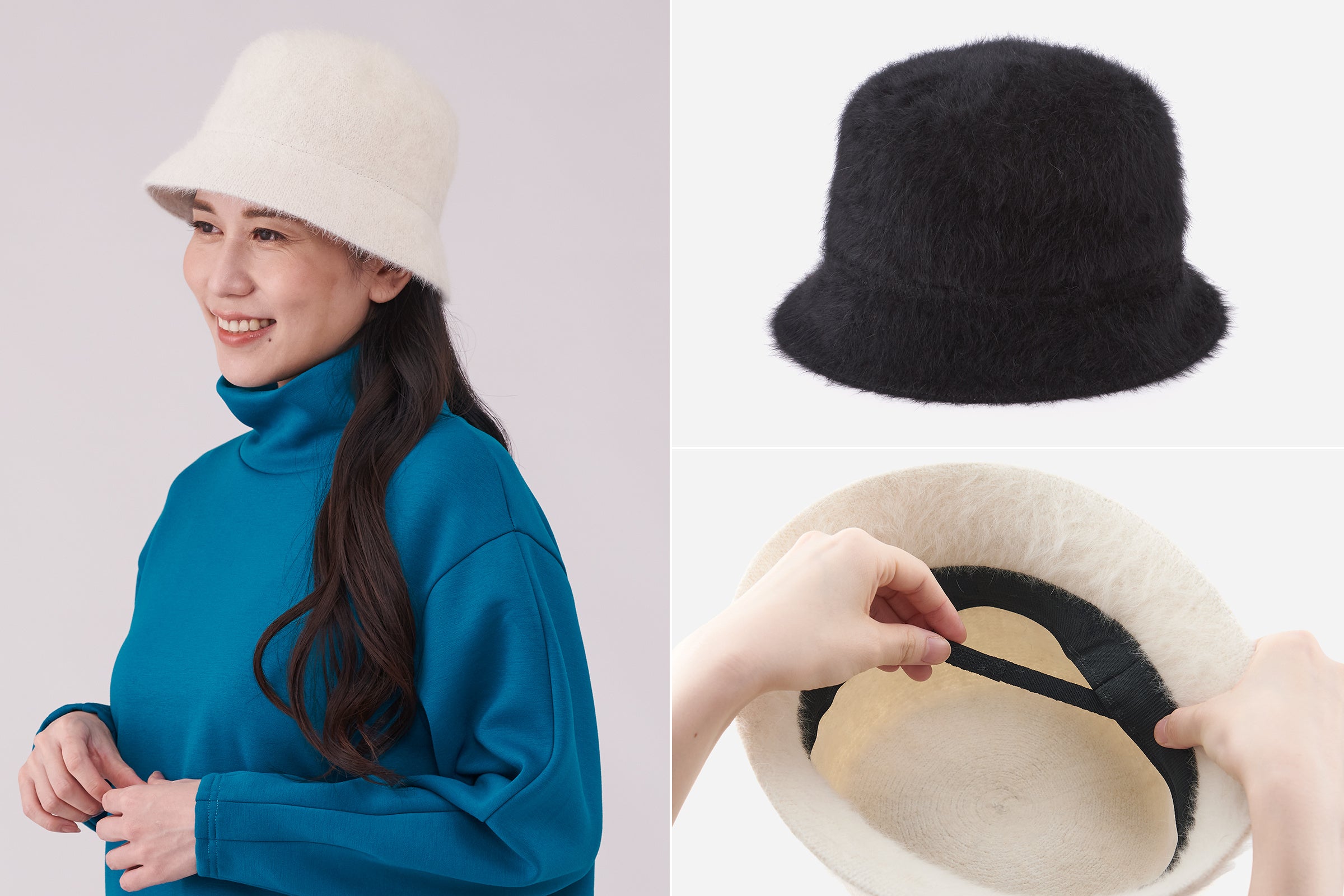 新作アイテムの1つ、「シャギーバケットハット」は、これからの季節にぴったりな素材を使用し、シンプルなコーディネートに取り入れるだけで上品さをアップしてくれるアイテムです。また、秋冬の定番アイテムとなりつつある人気の手首ウォーマーからは「モヘアライク手首ウォーマー」が新登場。毎年定番で人気の高級感のあるエコファー素材を採用した「エコファー差込ティベット」と「エコファー手首ウォーマー」からは新色が登場します。
