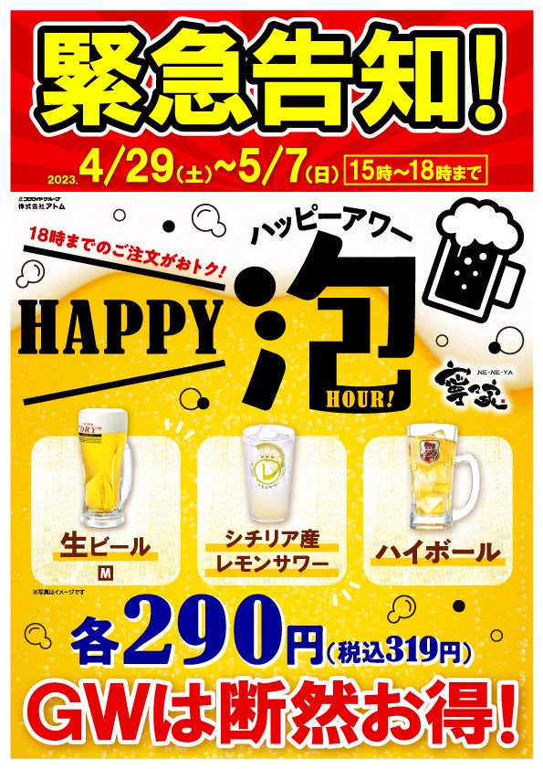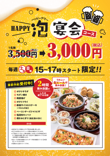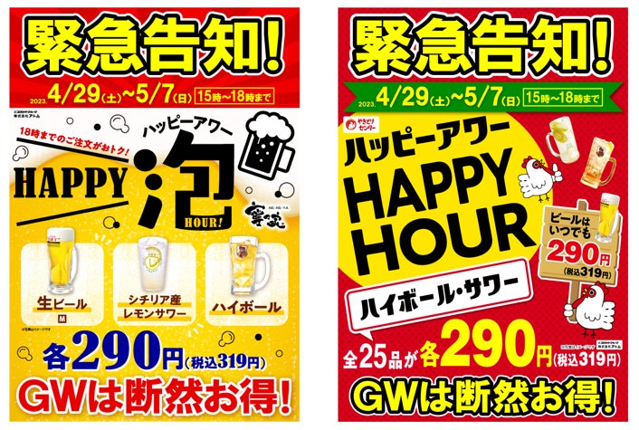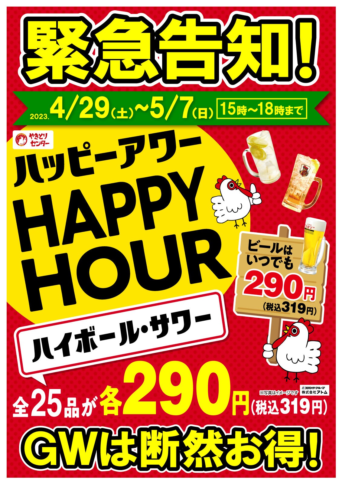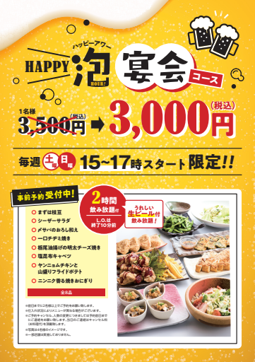 「ハッピーアワー時間拡大実施!更にハッピーアワー宴会も新登場」